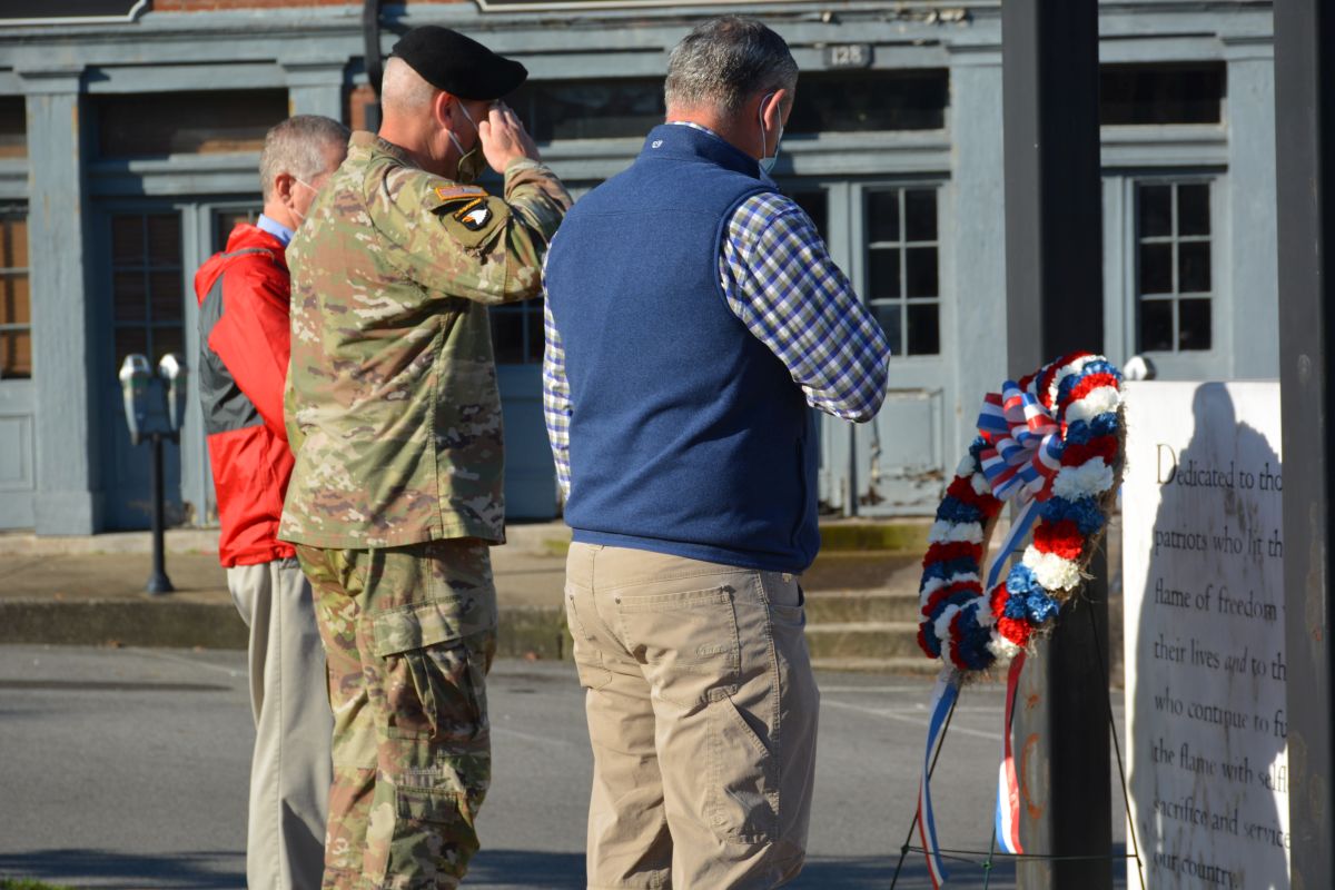 CLARKSVILLE, Tenn. (CLARKSVILLENOW) – The Military Affairs Committee of the Clarksville Area Chamber of Commerce hosted a wreath laying ceremony Saturday, November 7 at the base of the Eternal Flame on Public Square in Downtown Clarksville.