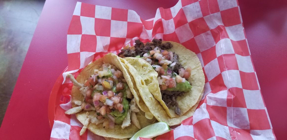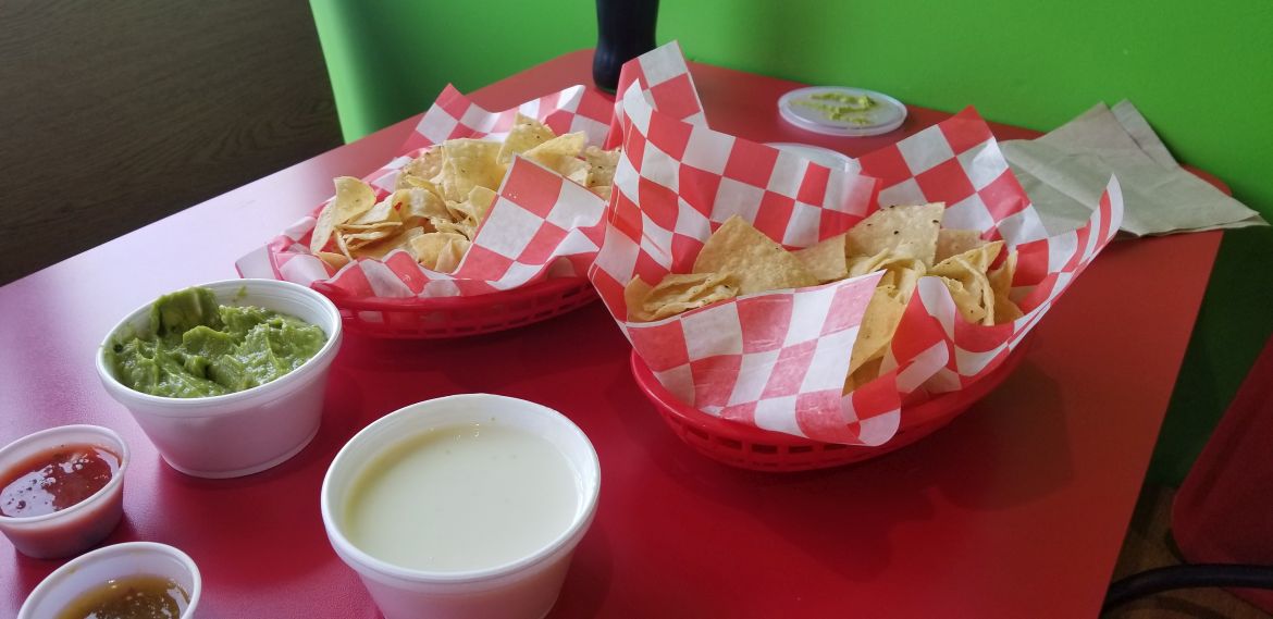 The menu is large and a bit overwhelming, but you can’t go wrong with the California-style tacos at $2.75 a piece. I ordered a chicken taco and a steak taco with a side of chips and queso and my lunch companion ordered the grilled flounder tacos and a side of guacamole.