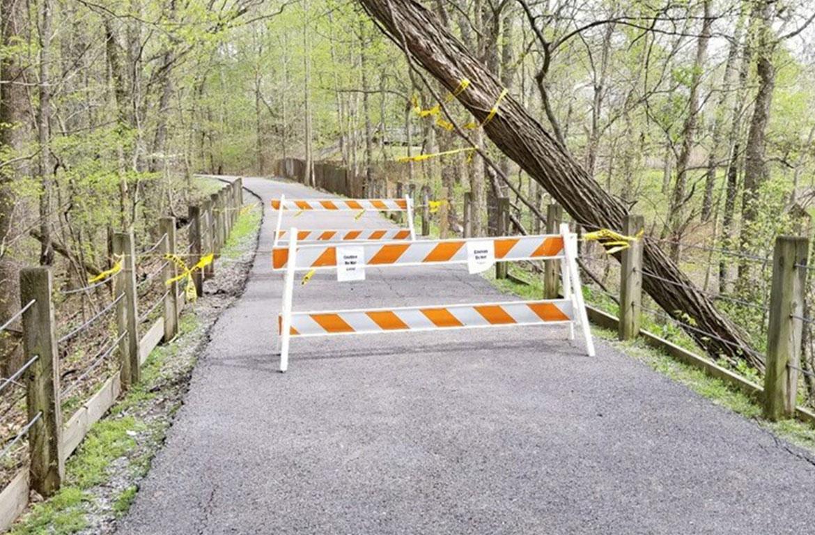 CLARKSVILLE, Tenn. (CLARKSVILLENOW) – A fallen tree has closed a section of the Clarksville Greenway between the Marys Oak Trailhead and the Raymond C. Hand Pass pedestrian bridge.