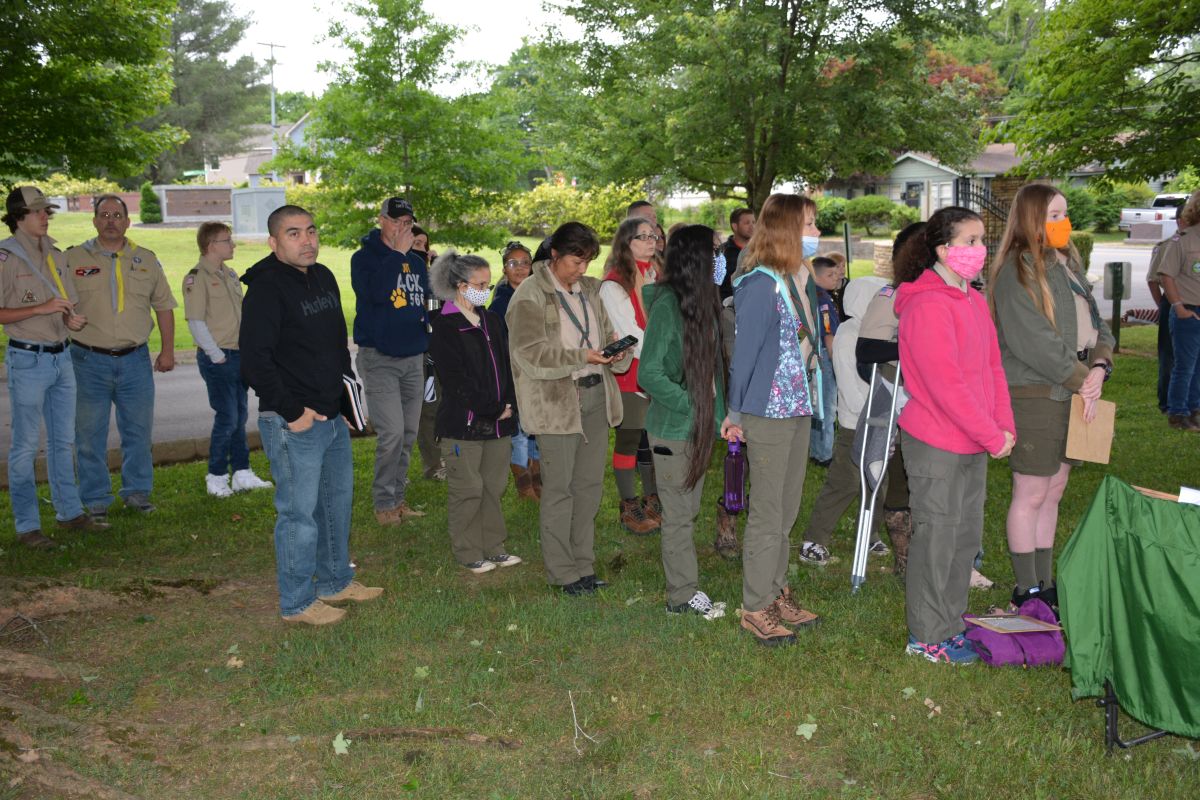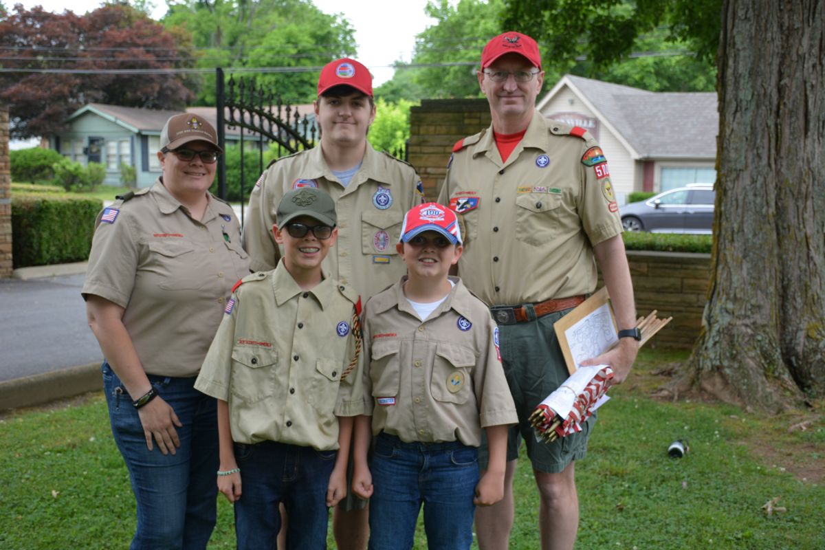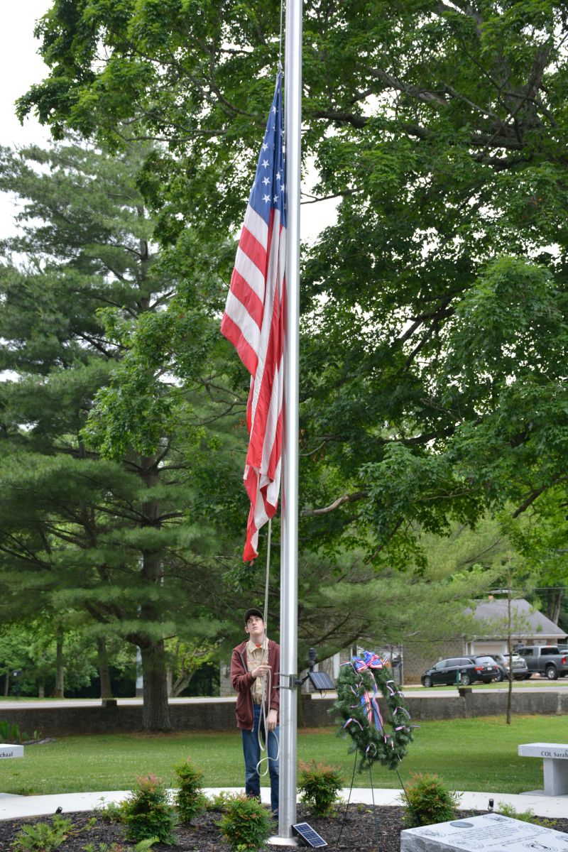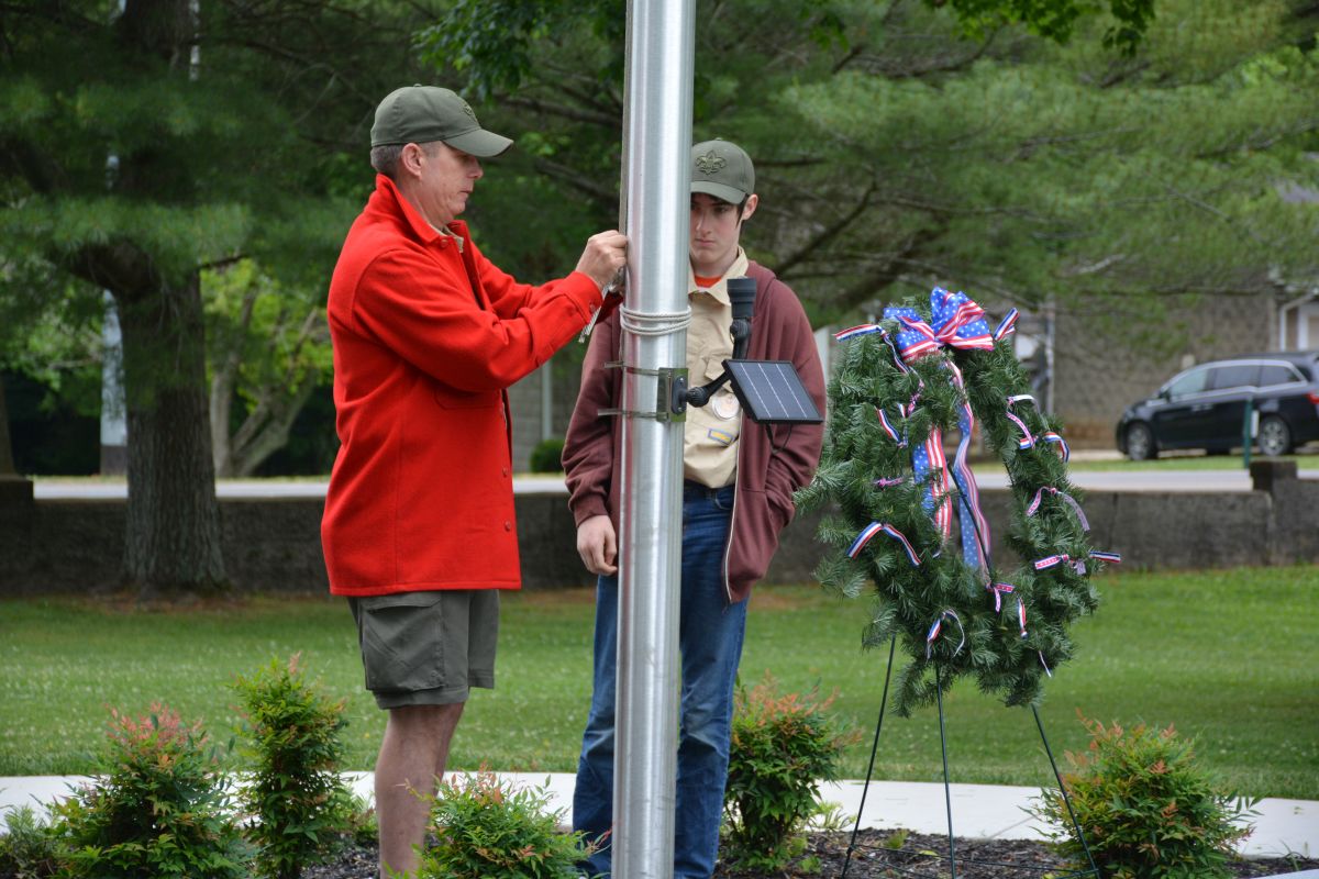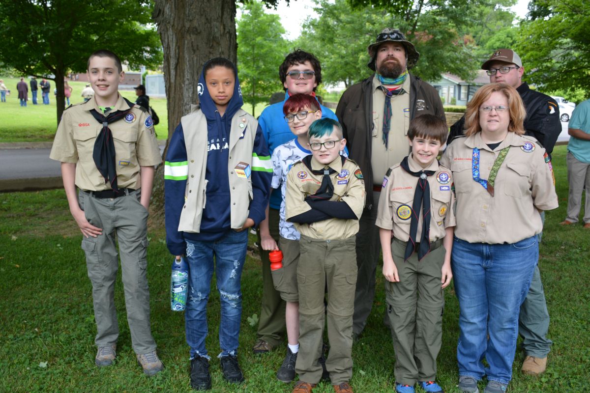 After a brief ceremony with the playing of taps, and the U.S. flag being lowered to half-staff, at the Veterans Memorial at Greenwood Cemetery, more than 100 scouts from the Cogioba District, supported by family and friends, placed hundreds of flags on veteran’s gravesites at the cemetery on Saturday, May 29.
