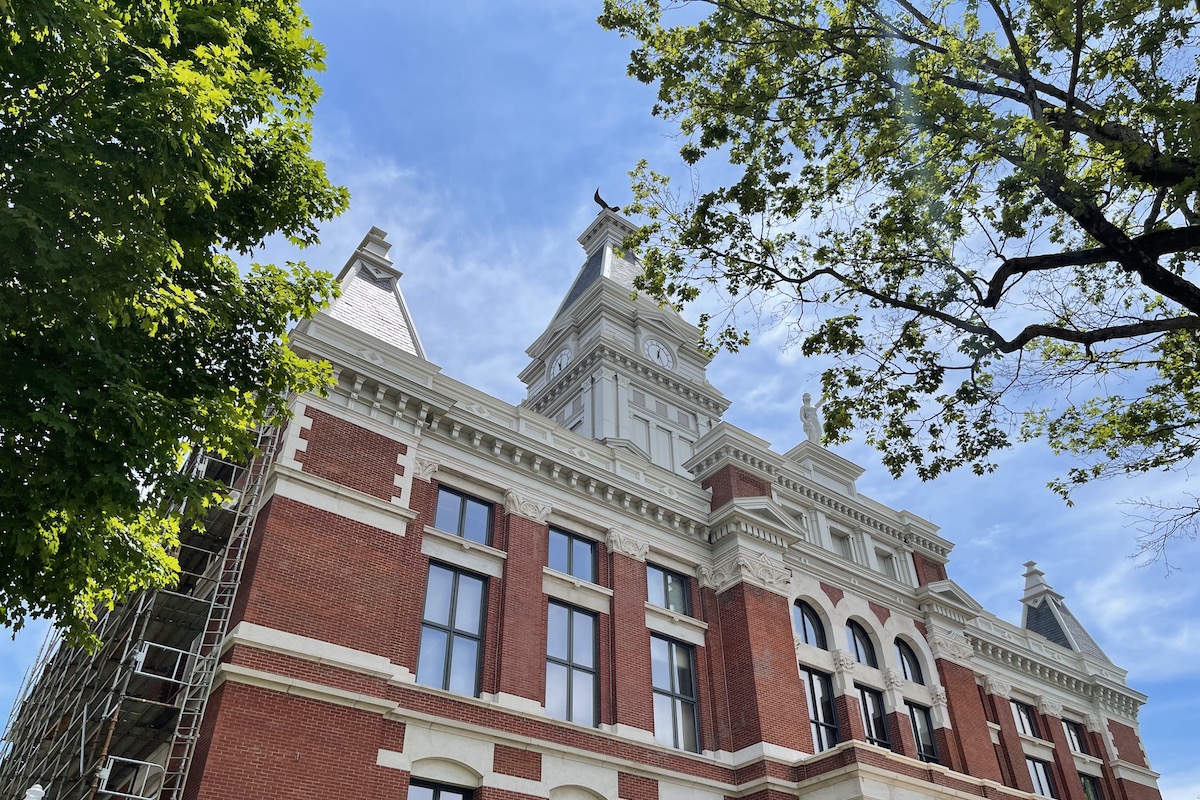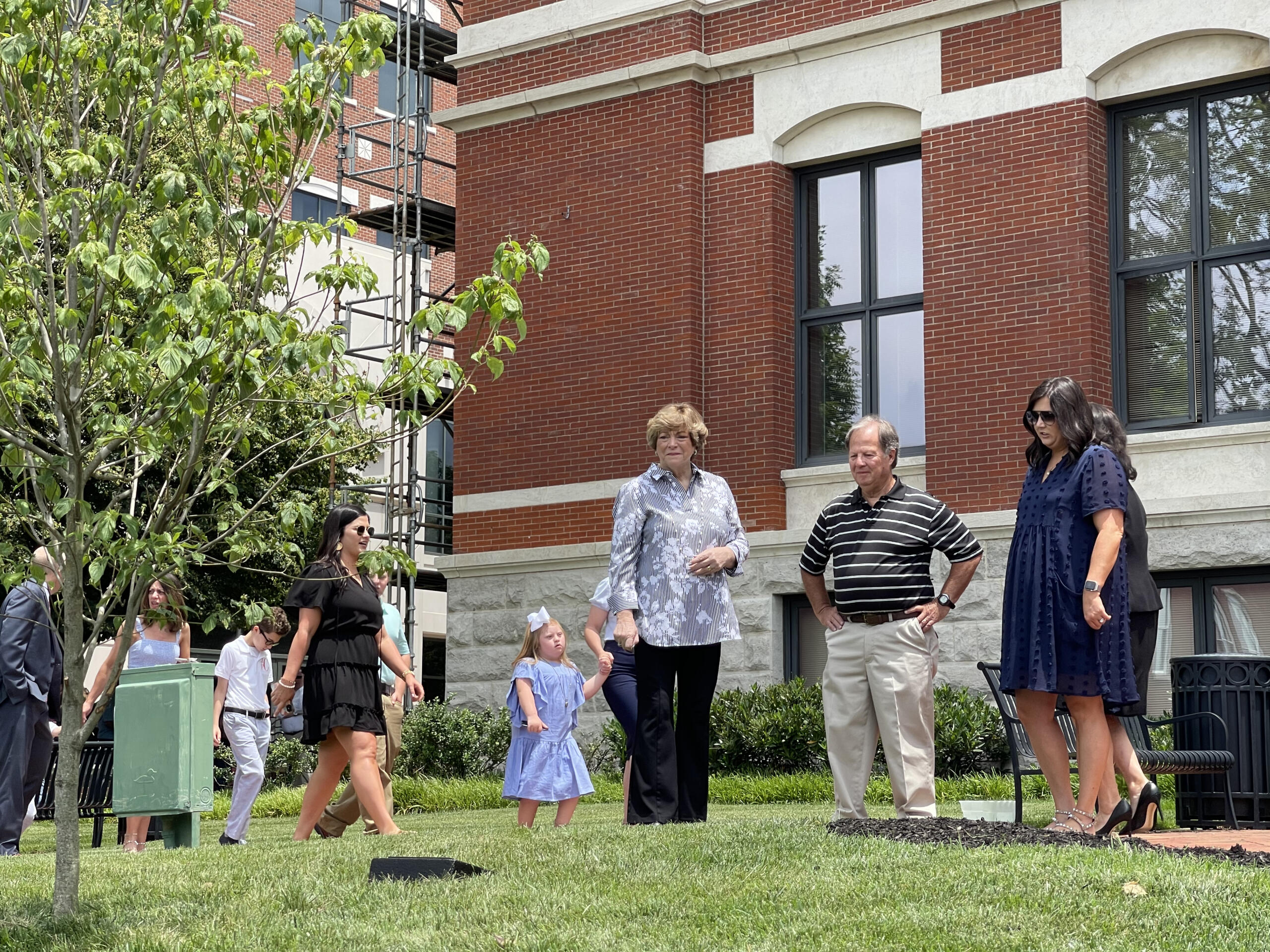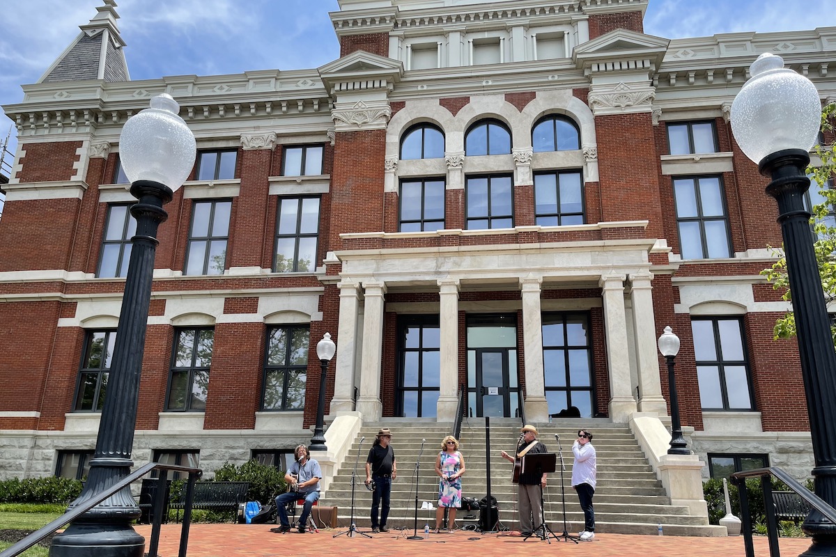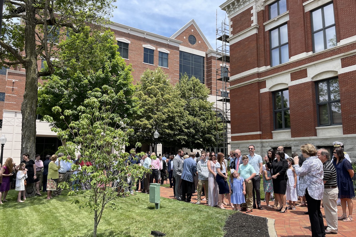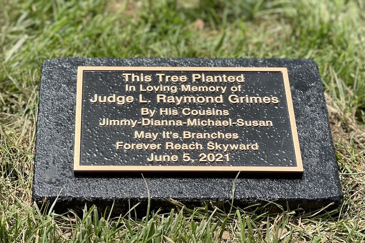 The group moved out onto the lawn of the County Courthouse, where a tree had been planted in Grimes’ memory. A memorial plaque had also been placed by Grimes’ cousins.