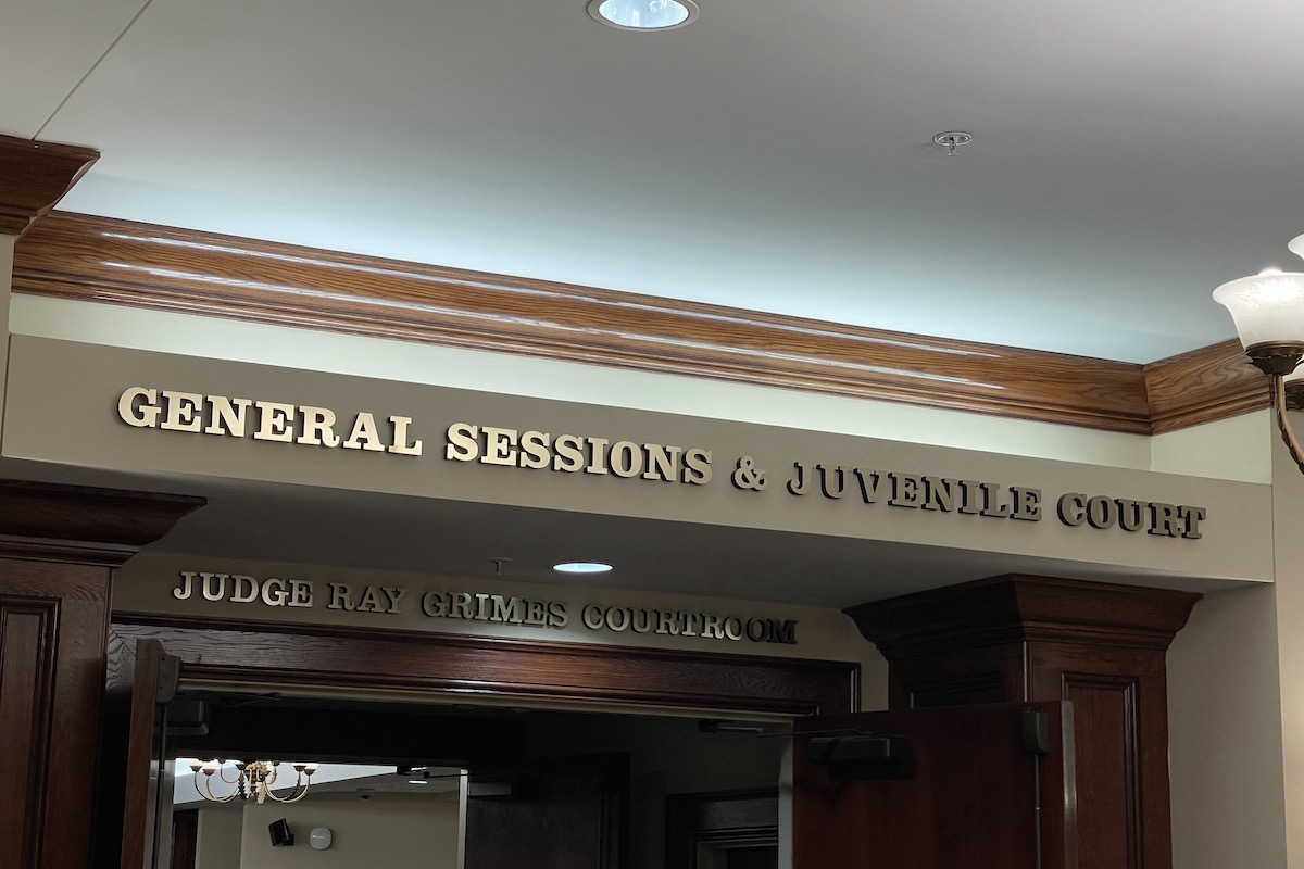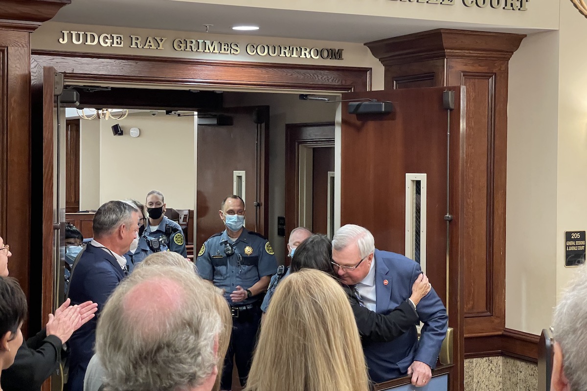 Durrett unveiled the new “Judge Ray Grimes Courtroom” sign above the doors to Room 205, which is where Judge Massey-Grimes now practices.