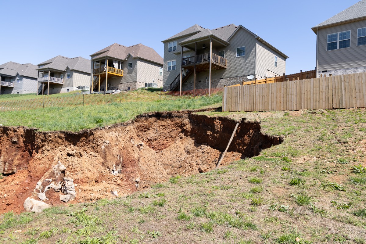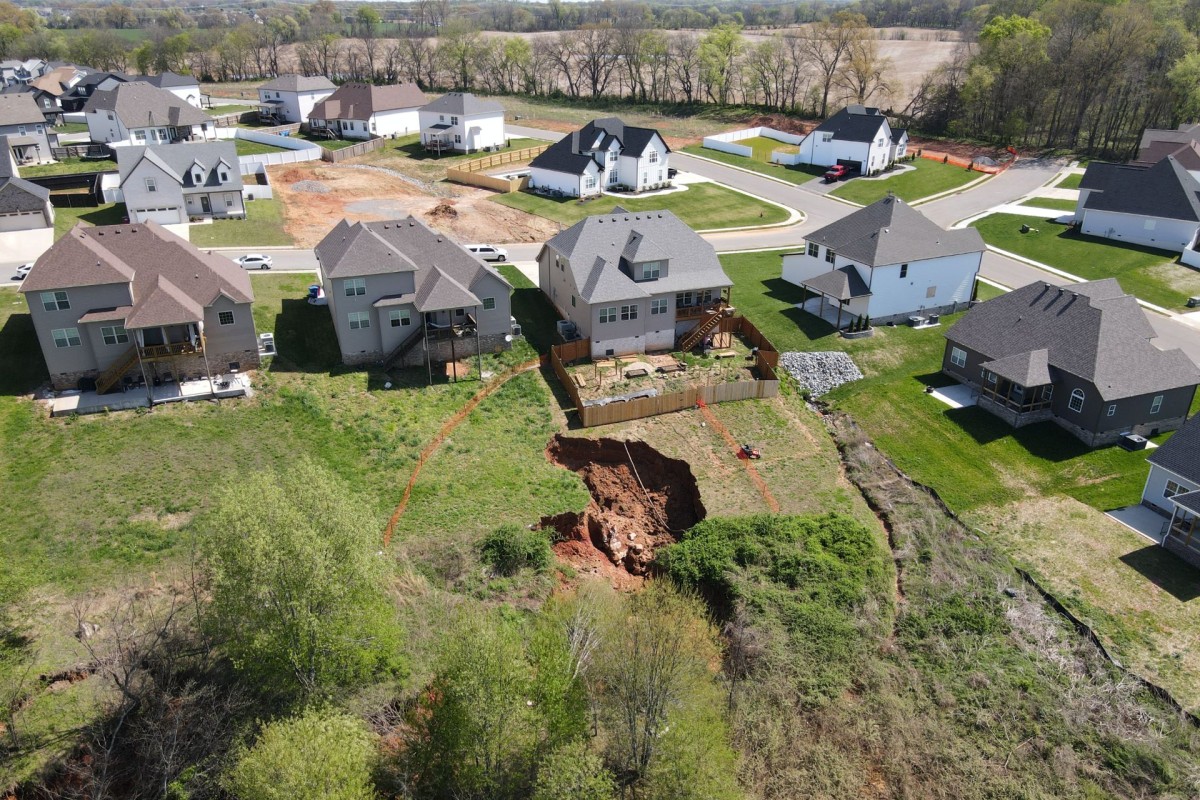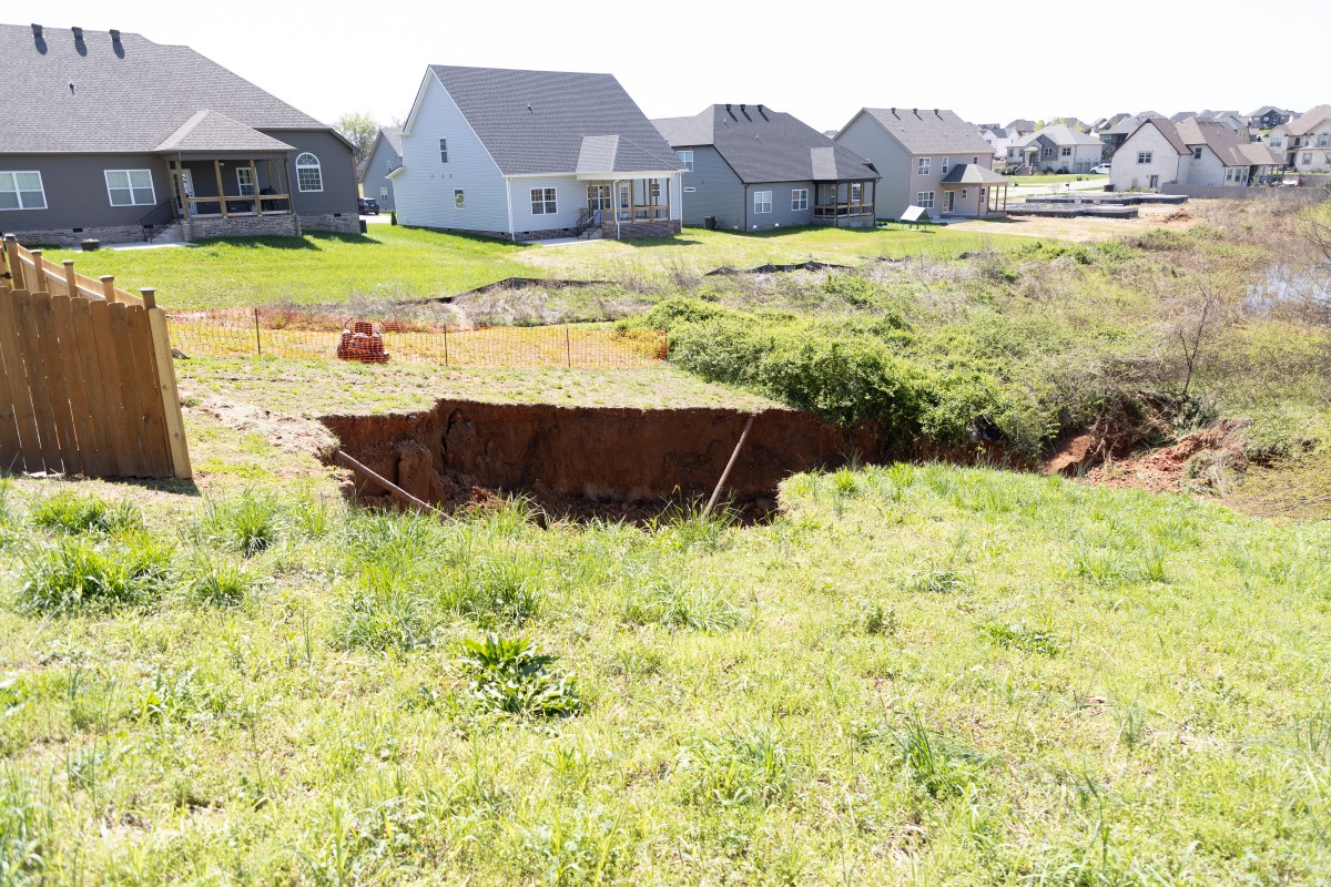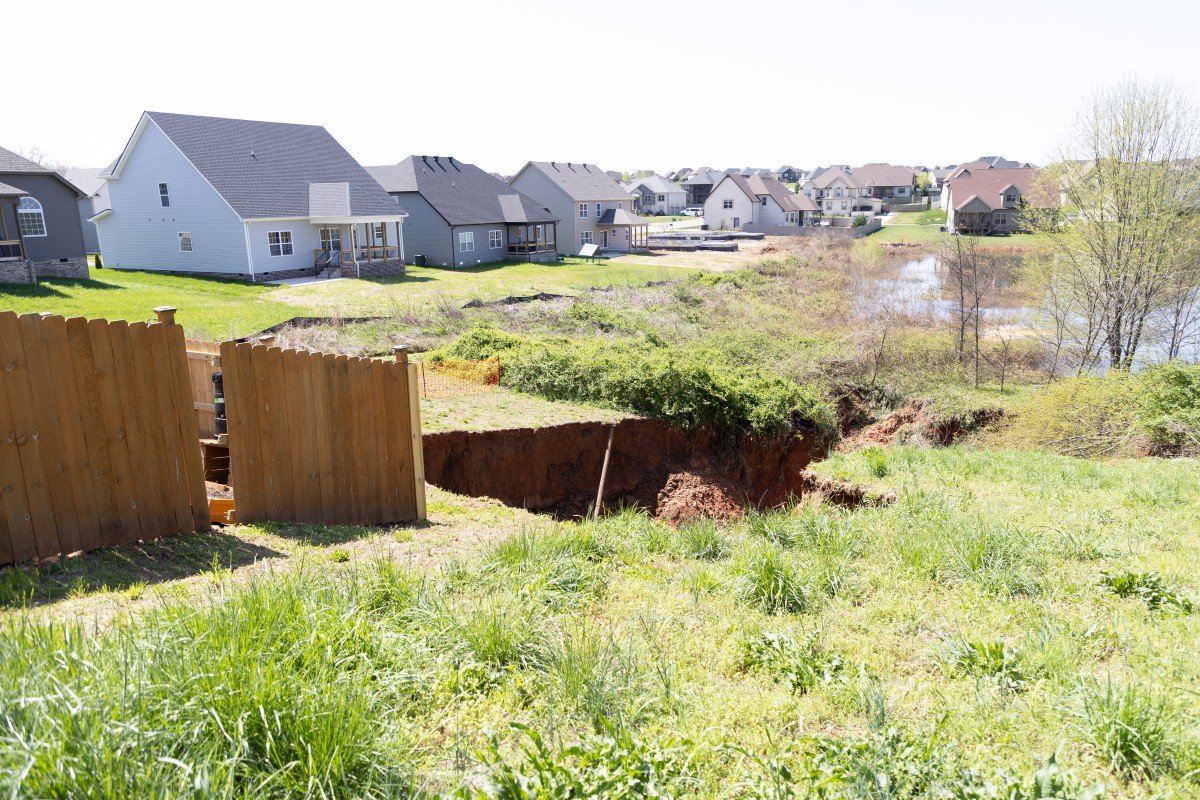 CLARKSVILLE, TN (CLARKSVILLE NOW) – As Montgomery County continues recovering from last week’s storms, the Farmington subdivision off Exit 8 isn’t just dealing with flooding, but also with the opening of a massive sinkhole in their backyards and raw sewage running across their properties and backing up into their homes.