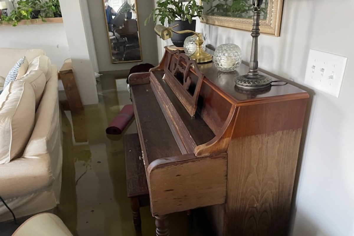 Ultimately, the sandbags didn’t matter. On Sunday, the floodwater rose well above the sandbags at the garage, and it was still knee-deep on Wednesday. Inside the house, the water rose above about 4 feet – above their couches, higher than the kitchen countertops, and flowed over the keys on their piano.