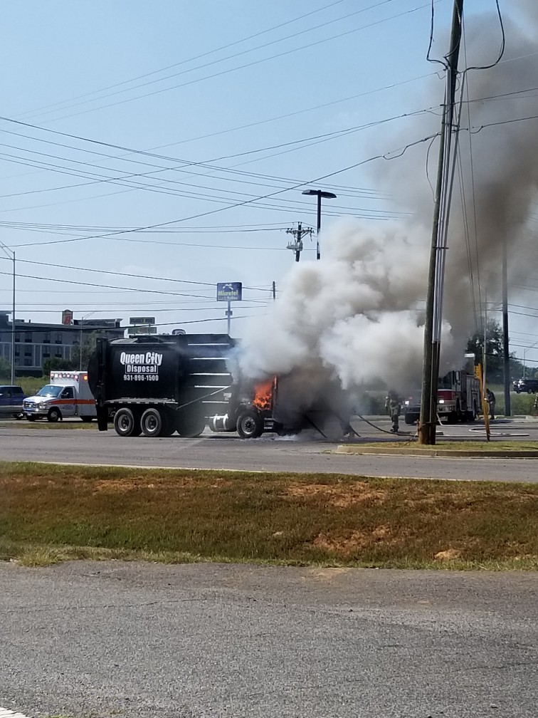 The driver of the truck was transported to Tennova by MCEMS with minor burns to his arms.