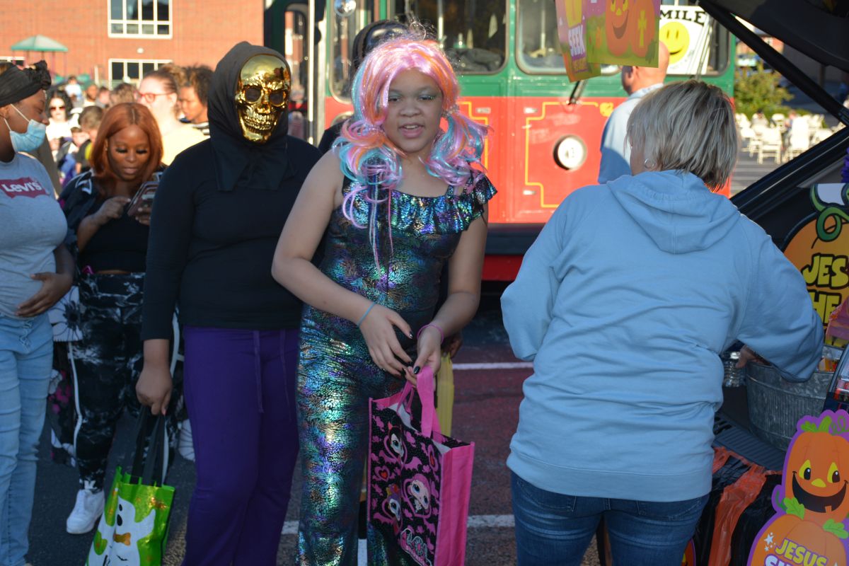 Along with of course all the trunk-or-treat sites with lots of candy, there was food, inflatables, train rides, and laser tag, for the children and everything was free.
