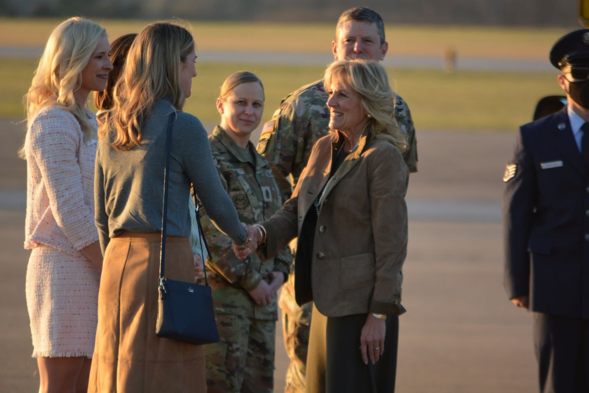 First Lady Dr. Jill Biden arrives at Fort Campbell, on Mar. 9 2022. (Lee Erwin)