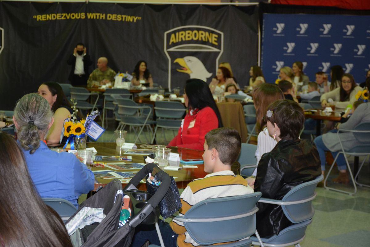 Military families gather to hear First Lady Dr. Jill Biden speak during her visit to Fort Campbell, on Mar. 9 2022. (Lee Erwin)