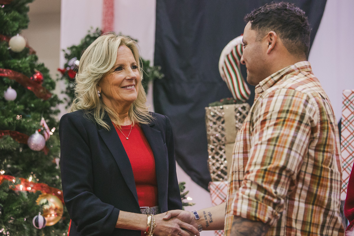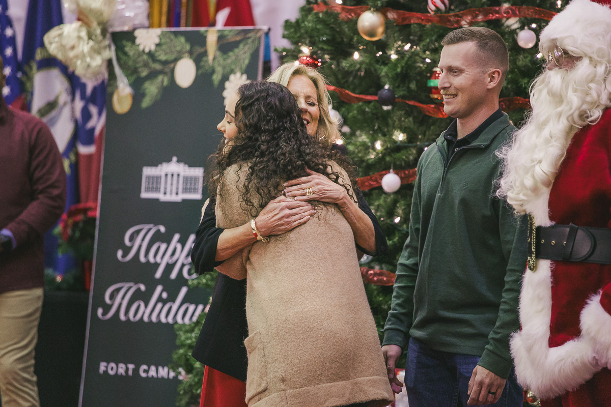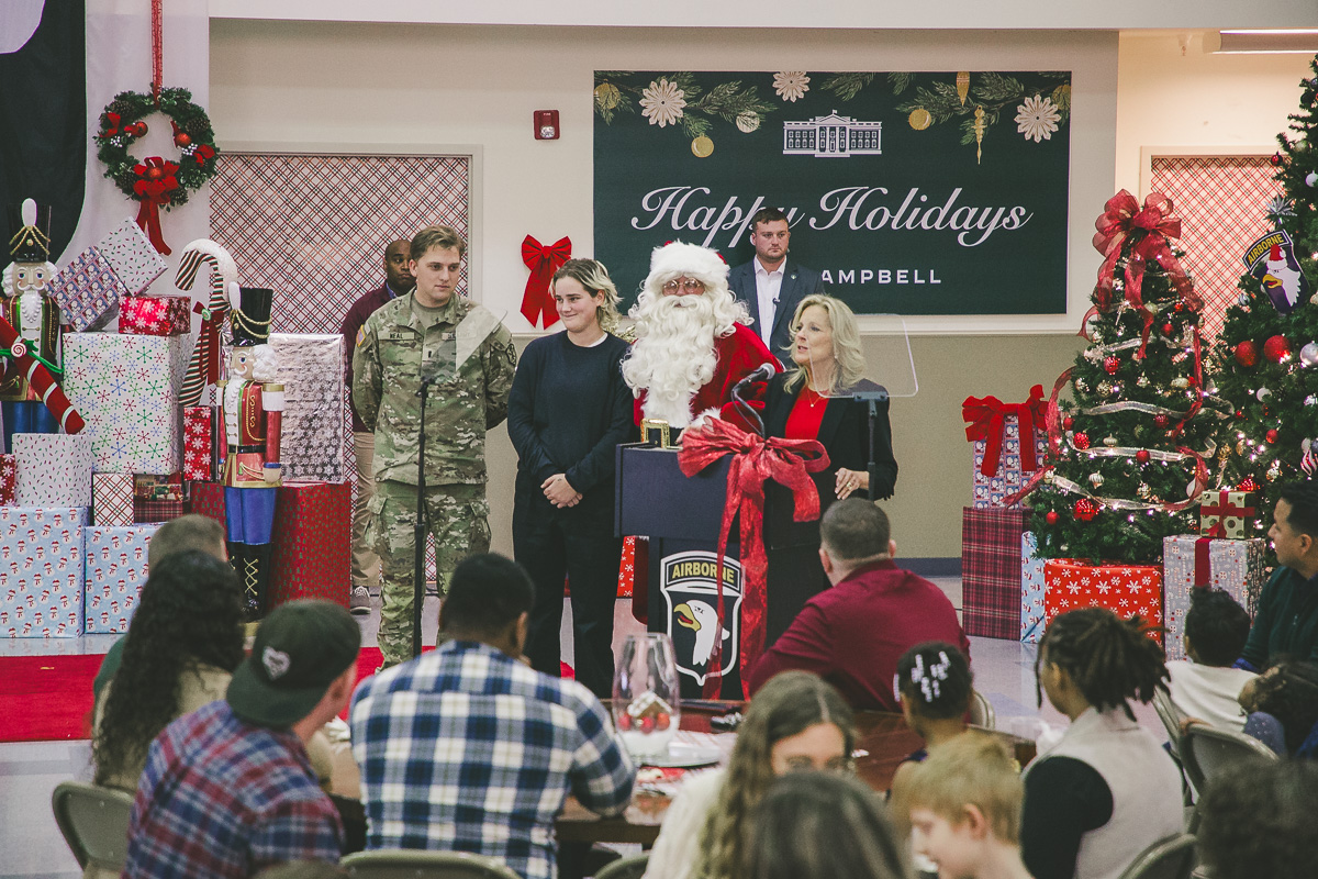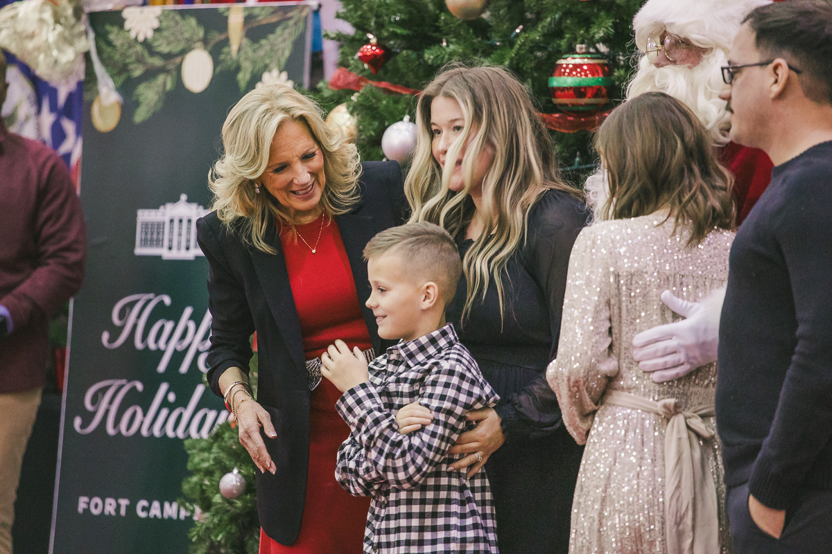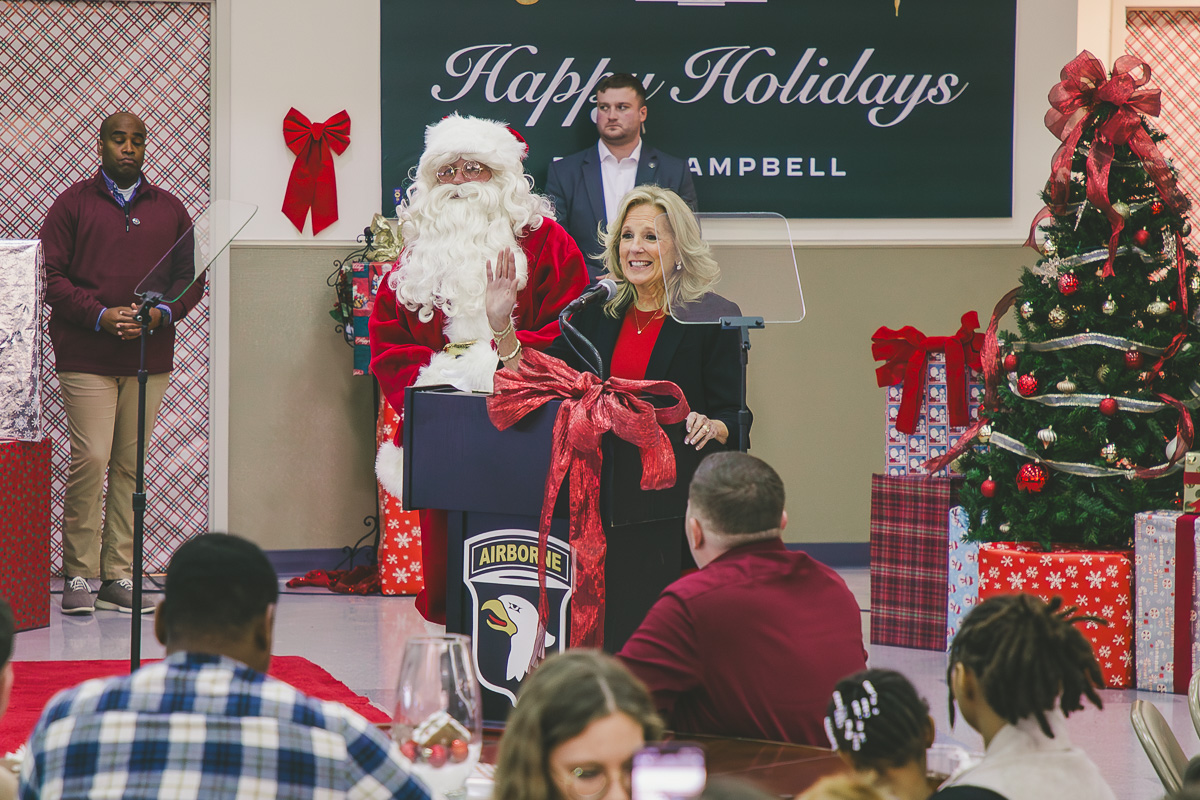 First Lady Jill Biden visited Fort Campbell on Saturday, to celebrate Christmas and to meet with military families whose homes were destroyed or damaged by the Dec. 9 tornado.