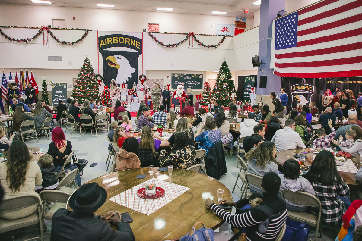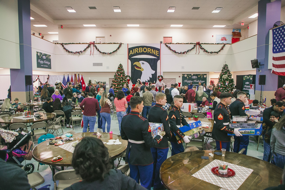The holiday celebration was supported by Armed Services YMCA, U.S. Marine Corps Reserve Toys for Tots, and Mission BBQ.