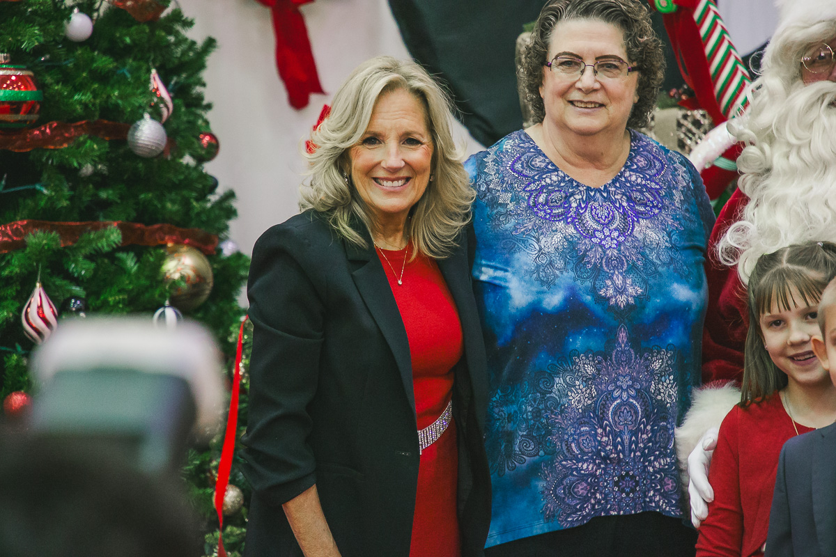 Dr. Biden participated in a holiday celebration with local military families and tornado relief volunteers.