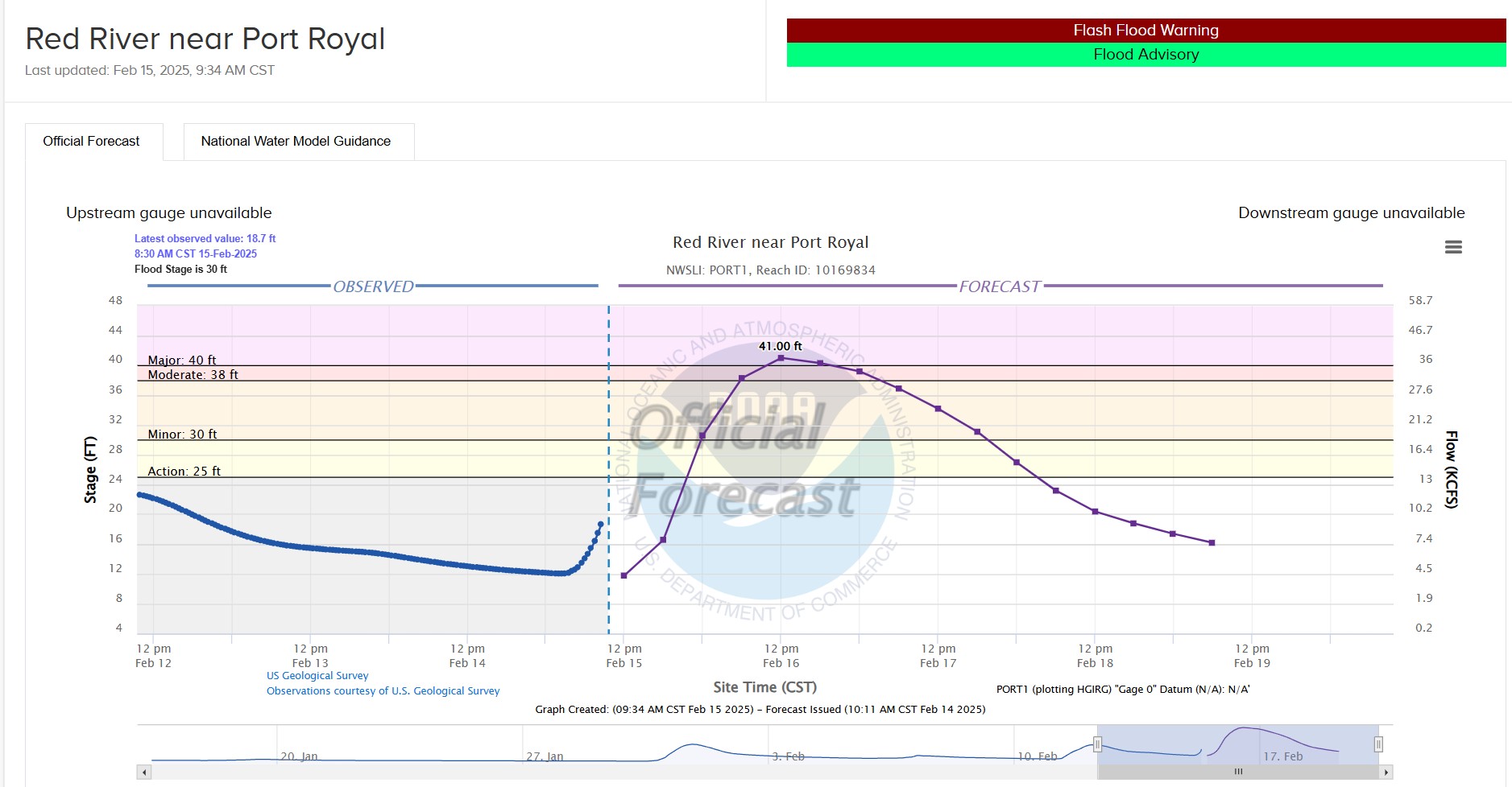 Meanwhile, the Cumberland River is expected to rise in Clarksville, and there’s still a chance it could top near the 50-foot “moderate flood” stage. It’s currently predicted to peak at 48.7 feet. As for the Red River at Port Royal, there’s a chance it rises and peaks at the 40-foot “major flood’ stage.