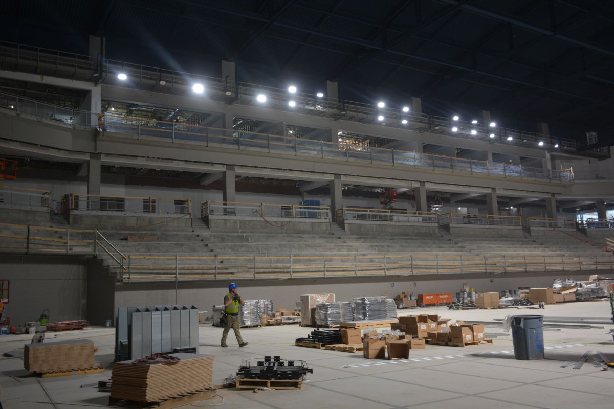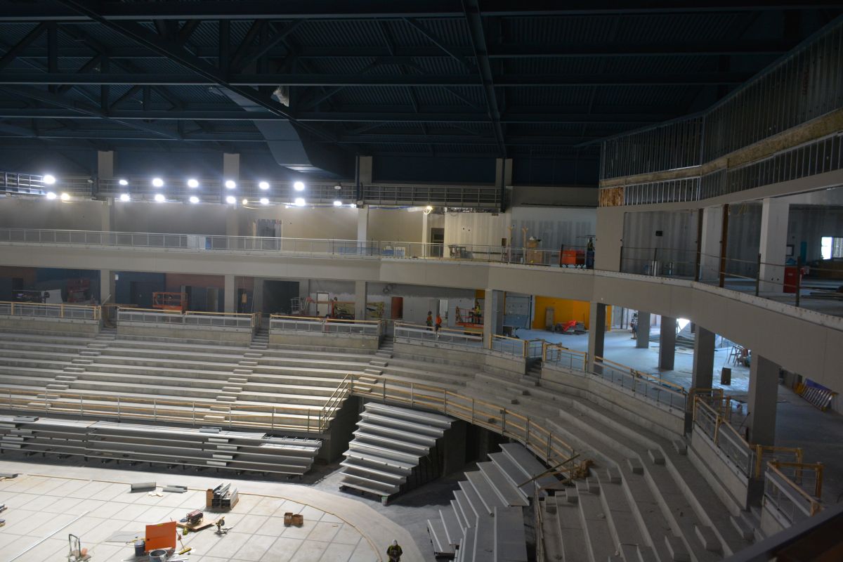 A view of the bleachers under construction at the F&M Bank Arena on, Aug 8, 2022. (Lee Erwin)