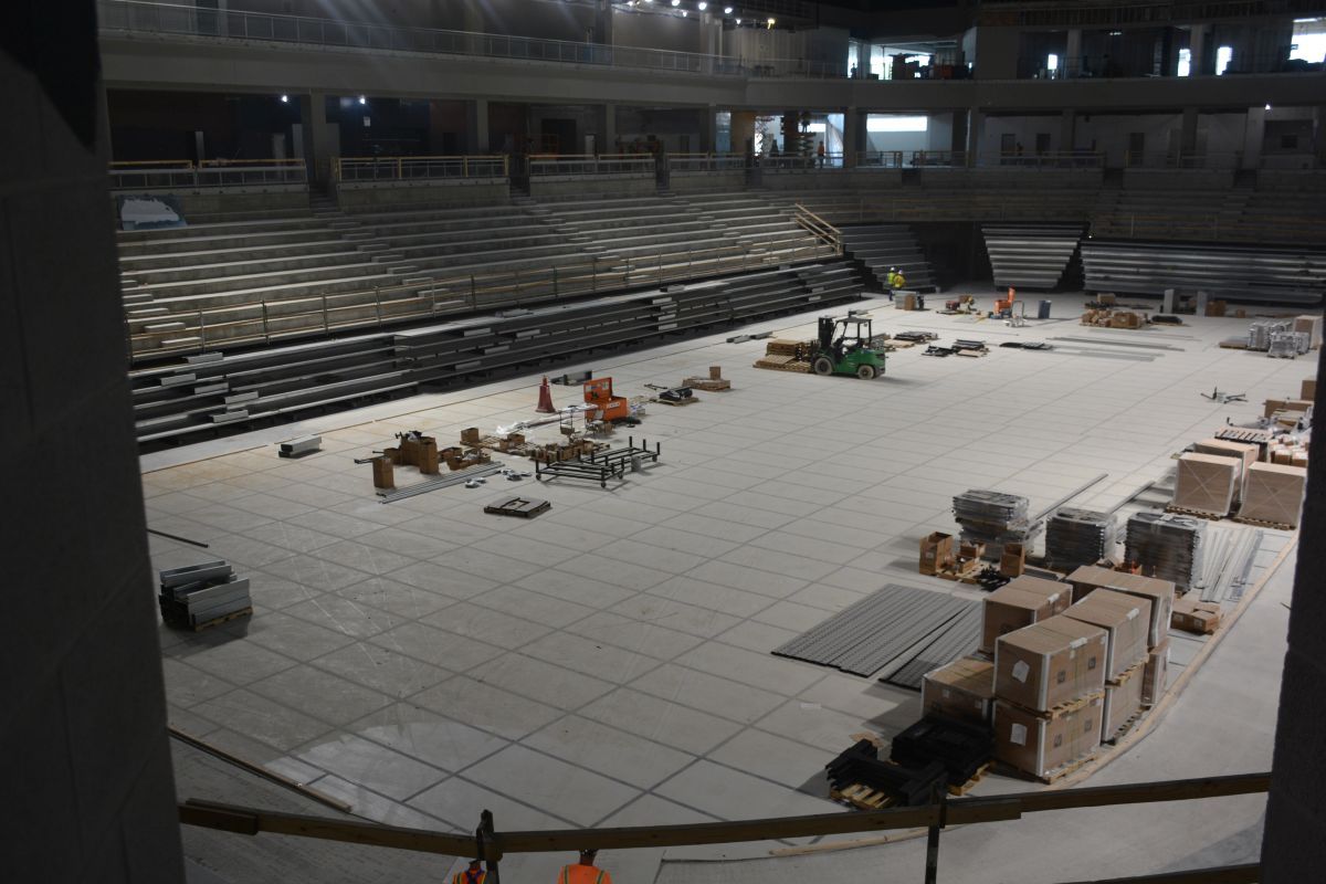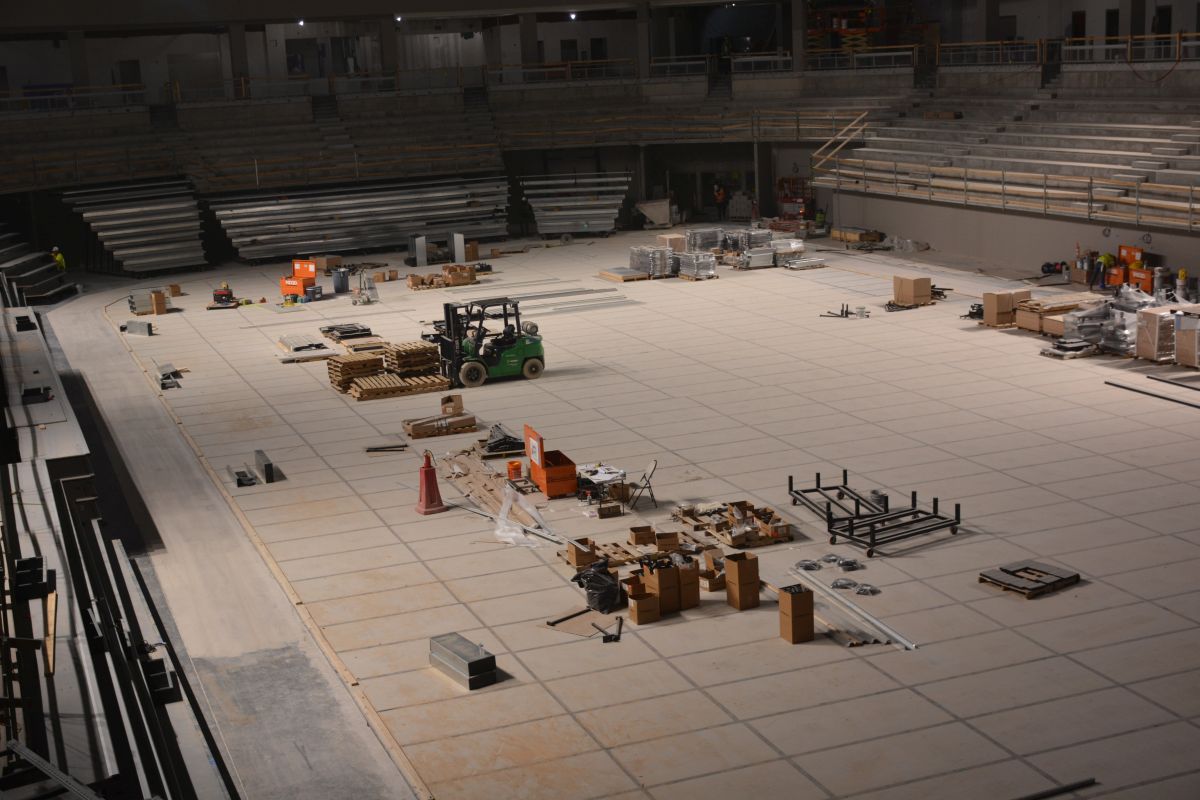 A view of the main arena floor under construction at the F&M Bank Arena on, Aug 8, 2022. (Lee Erwin)