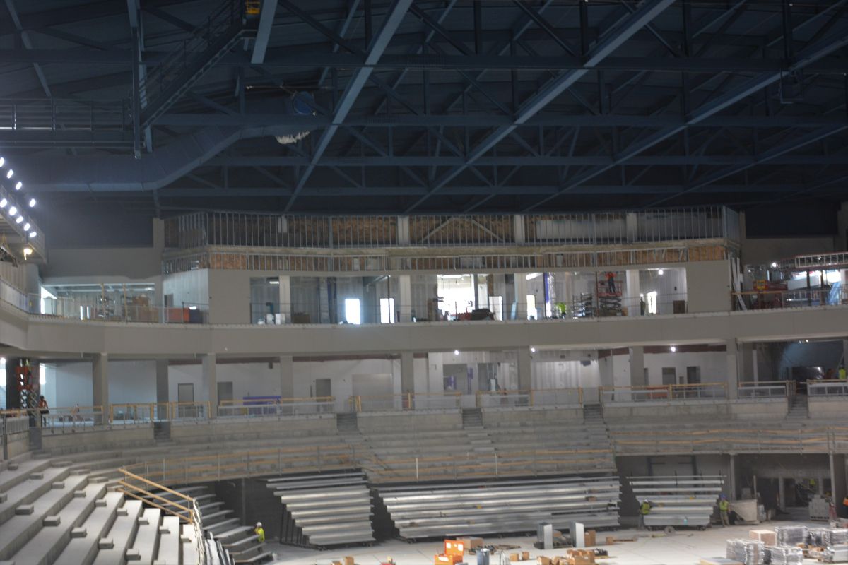 A view from the main floor of the arena under construction at the F&M Bank Arena on, Aug 8, 2022. (Lee Erwin)