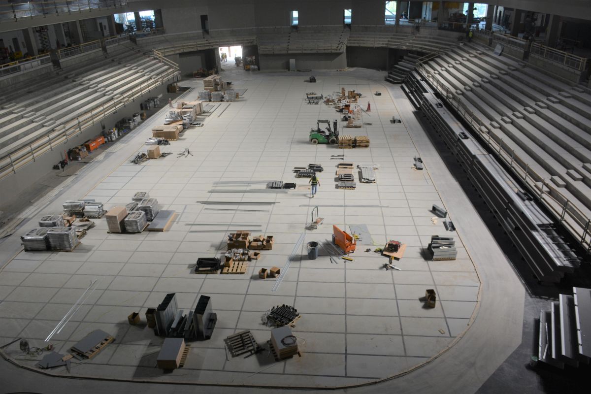 The area of one of the ice rinks under construction at the F&M Bank Arena on, Aug 8, 2022. (Lee Erwin)