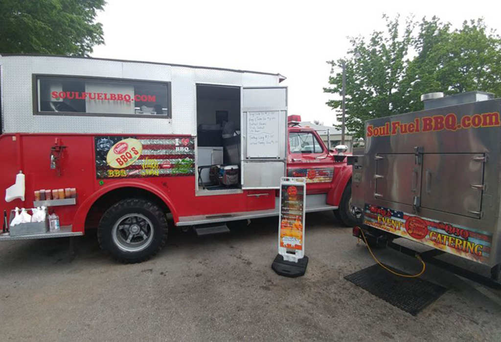 The participating food trucks are: Fire & Ice, Big City Dogs, Overtime Bar & Grill, Delta Sweets, and Soul Fuel BBQ.