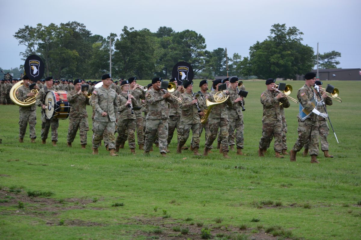 Screaming Eagle Soldiers with the 101st Band at the 101st Airborne Division (Air Assault) and Fort Campbell Change of Command Ceremony on Jul. 20, 2023. (Lee Erwin)