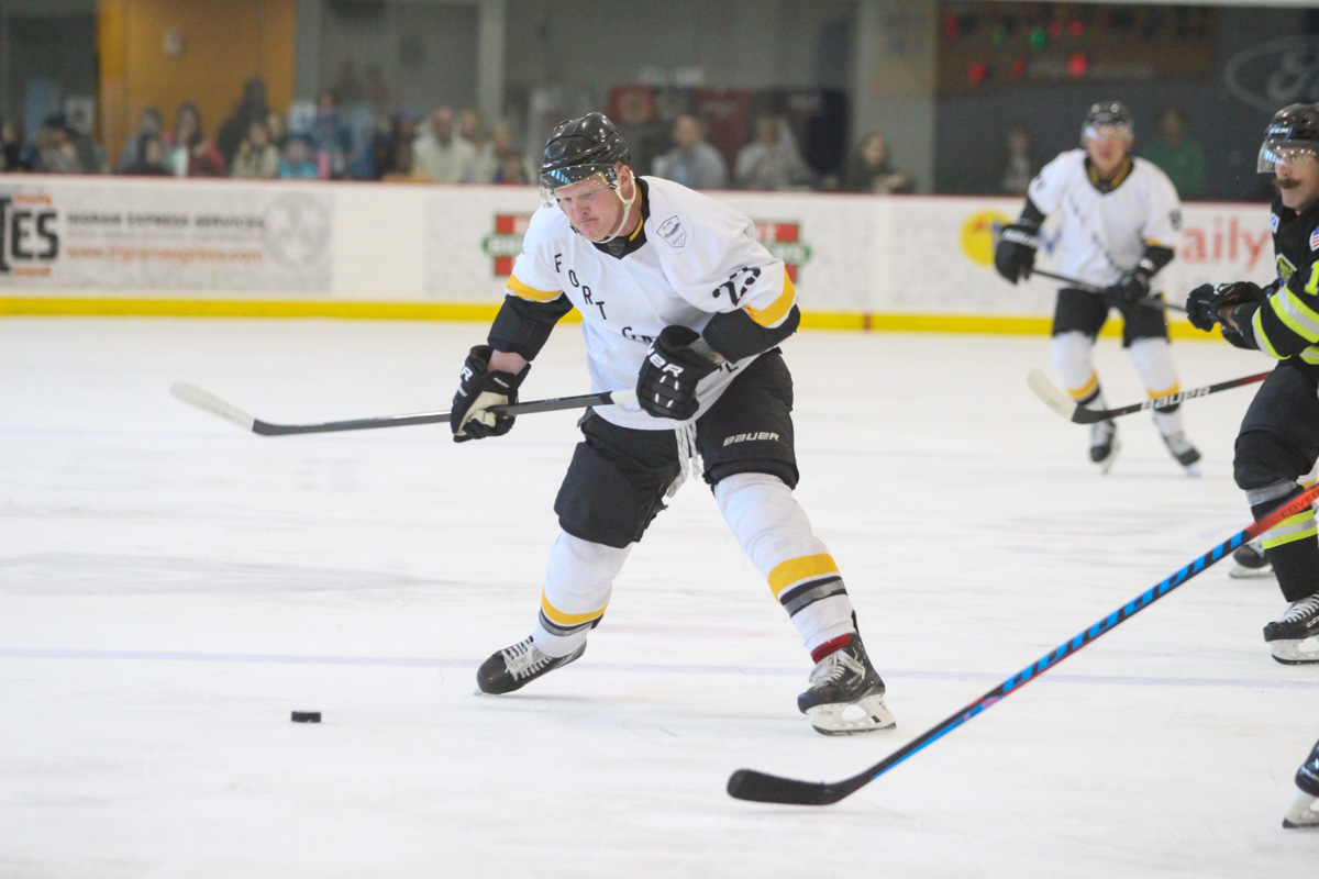 The Fort Campbell Screaming Eagles hockey team held two charity matches on Sunday at the Ford Ice Center for a sold-out crowd, fundraising for back to school supplies.