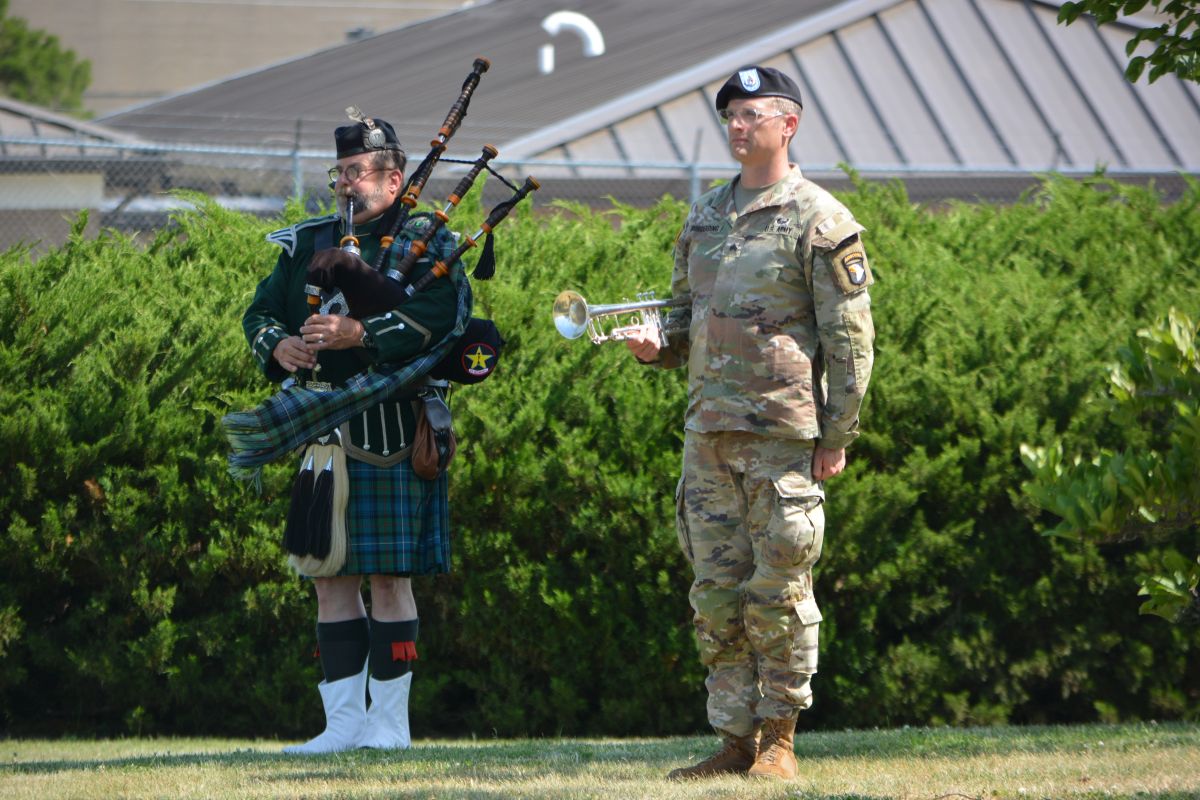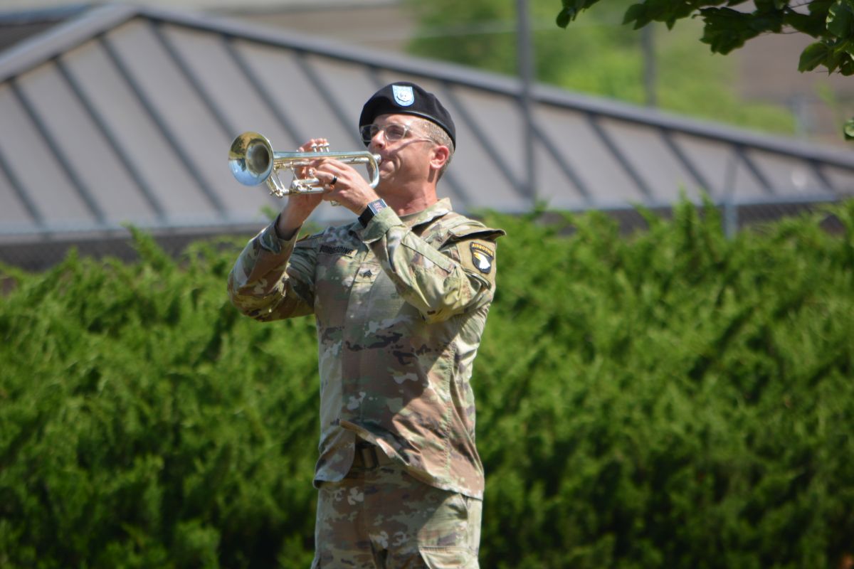 A bugler sound taps at the Week of the Eagles Boot Display Ceremony honoring 101st fallen heroes at Fort Campbell, on May 20, 2022. (Lee Erwin)