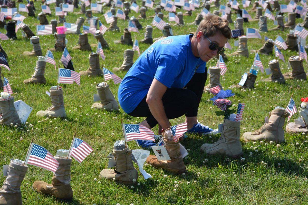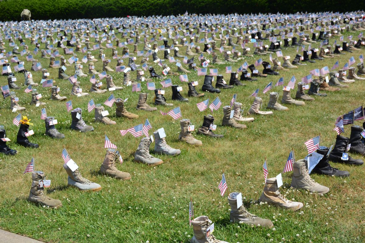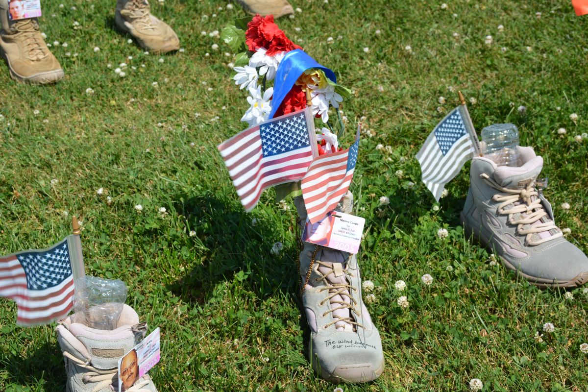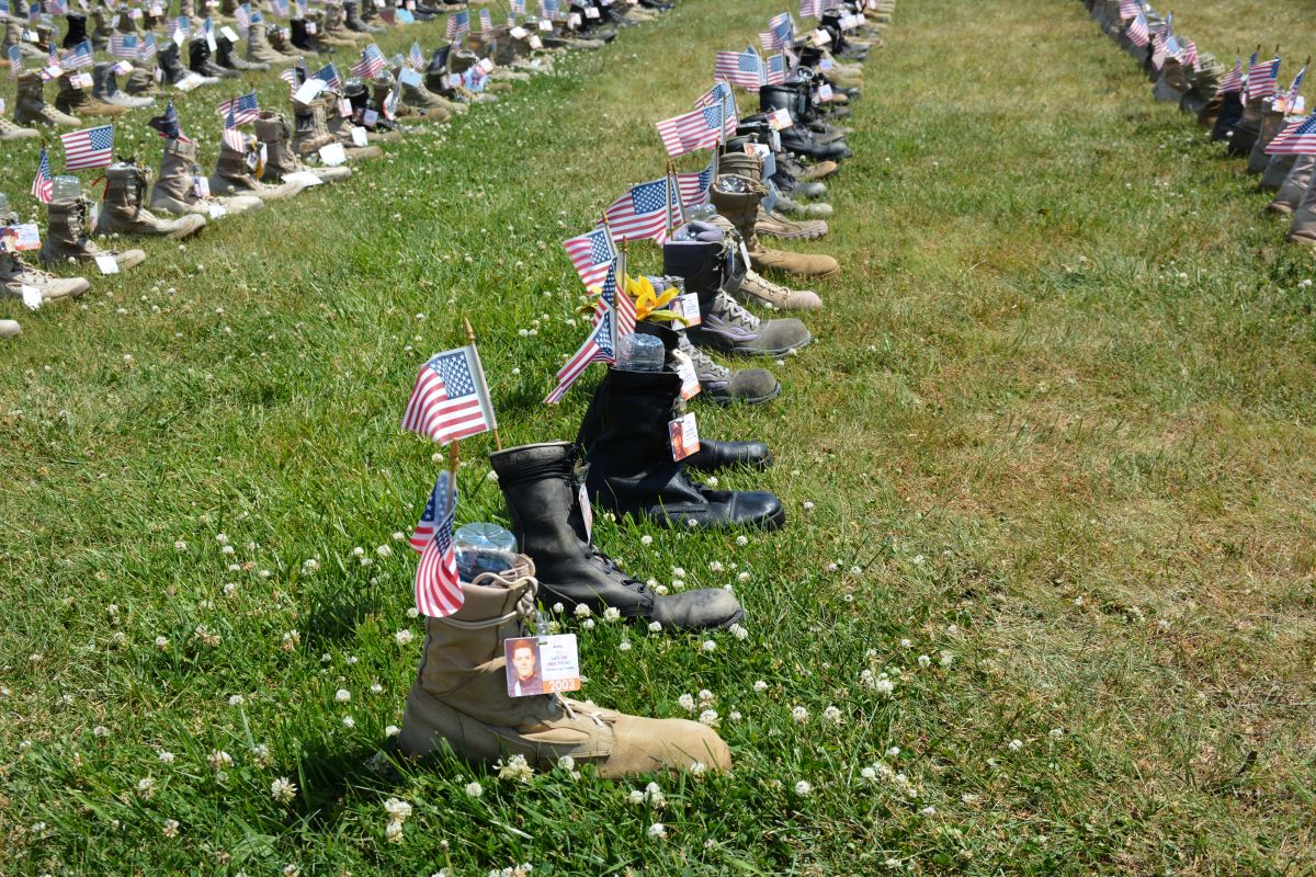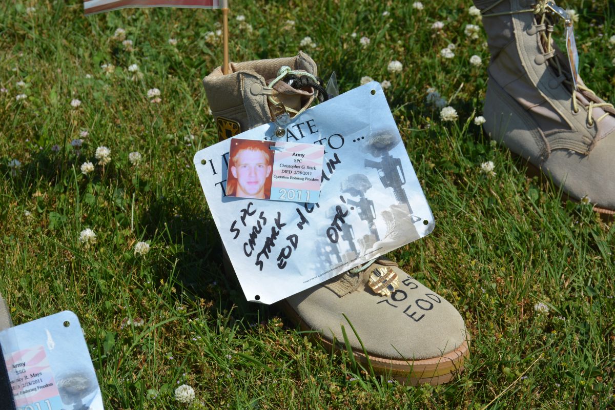 Each boot was adorned with two tags. One tag is a photo of the fallen service member, and the other lists the soldier’s name, rank, date and location of death.