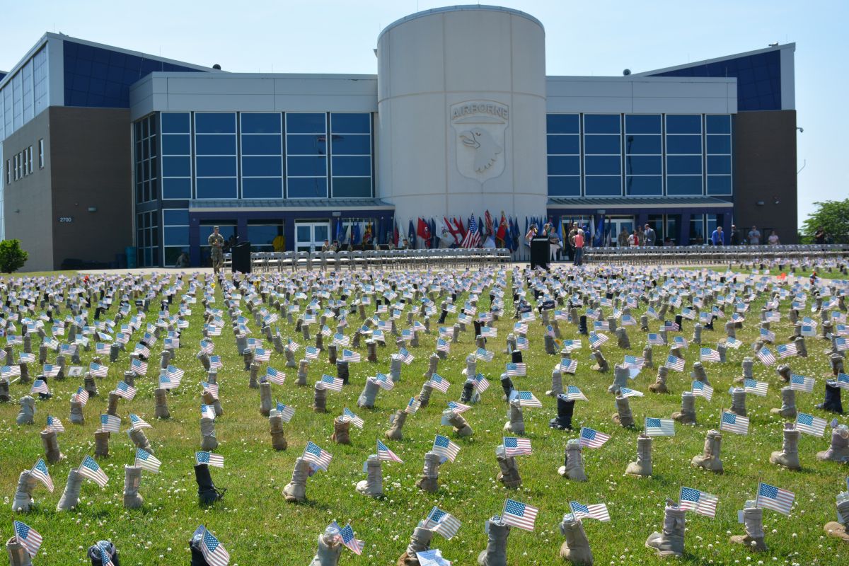 The annual Boot Display ceremony at Division Headquarters had more than 7,500 boots this year, one to honor each service member who has died in the line of duty since 9/11. The display included over 700 boots representing Fort Campbell soldiers, 500 of those from the 101st.