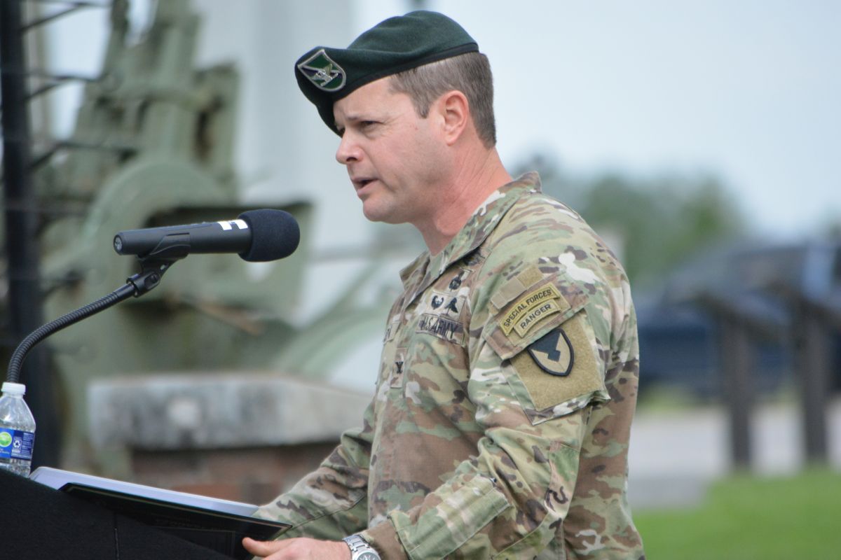 Colonel Andrew Jordan at the U.S. Army Garrison Fort Campbell Change of Command Ceremony on Aug. 16, 2023. (Lee Erwin)