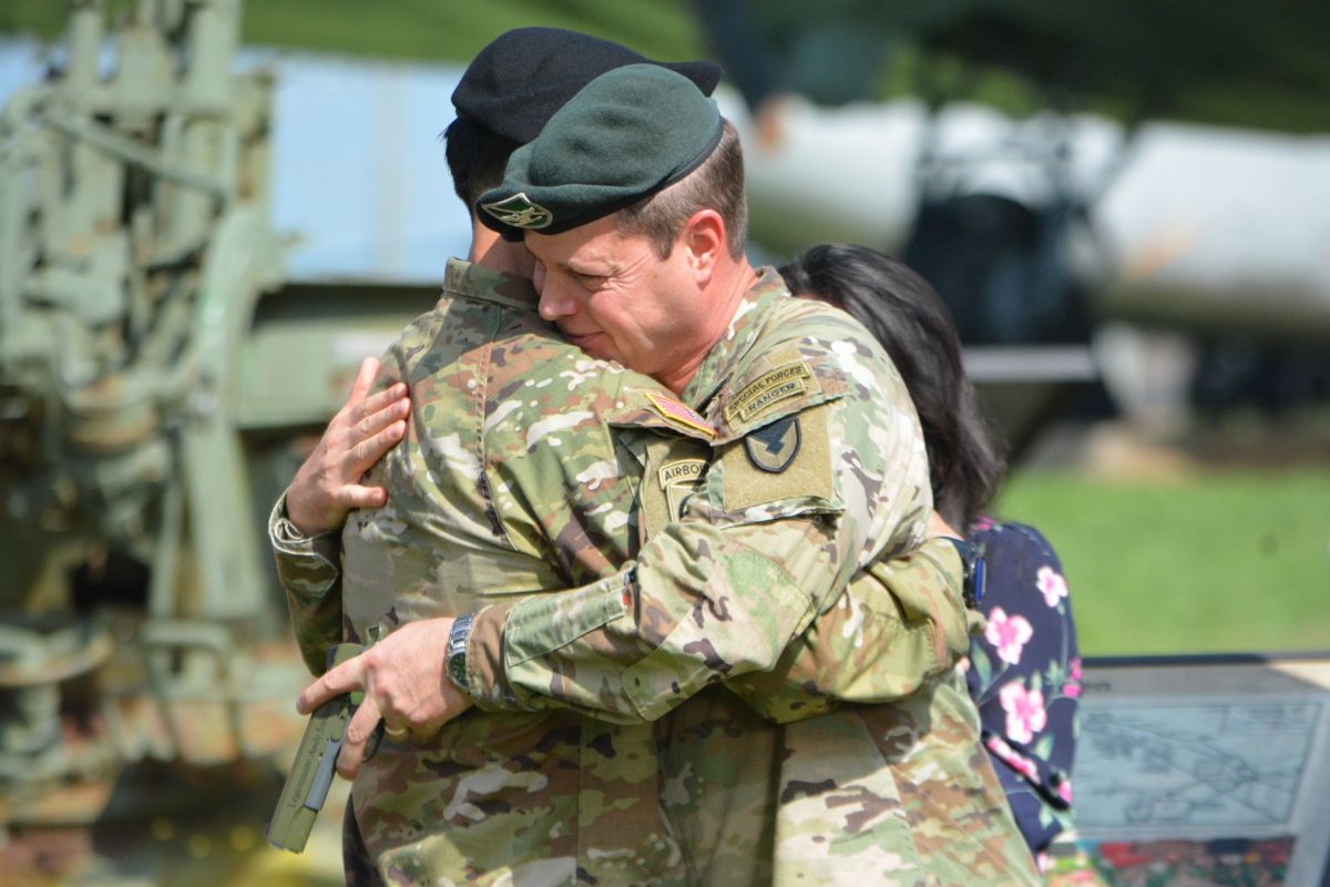 Brenda Lee McCullough & Colonel Andrew Jordan at the U.S. Army Garrison Fort Campbell Change of Command Ceremony on Aug. 16, 2023. (Lee Erwin)