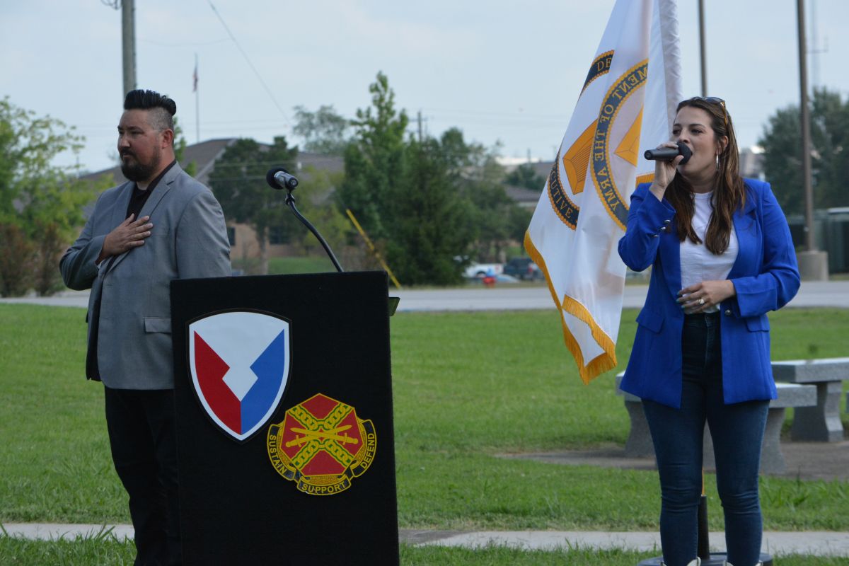 The ceremony ended with singer Jenny Teator performing a song she wrote titled “Screaming Eagles” about her grandfather who served in the 101st as a paratrooper during World War II. Teator was joined by fellow performer Sheridan Gates.