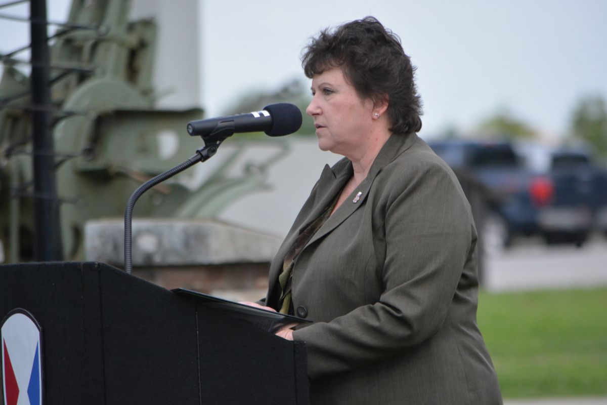 Brenda Lee McCullough at the U.S. Army Garrison Fort Campbell Change of Command Ceremony on Aug. 16, 2023. (Lee Erwin)