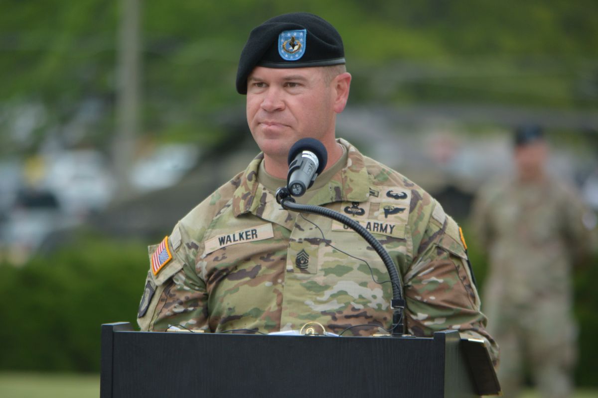In another ceremony Knapp, the Army’s first female command sergeant major, relinquished responsibility to the incoming Command Sgt. Maj. Charles Walker.
