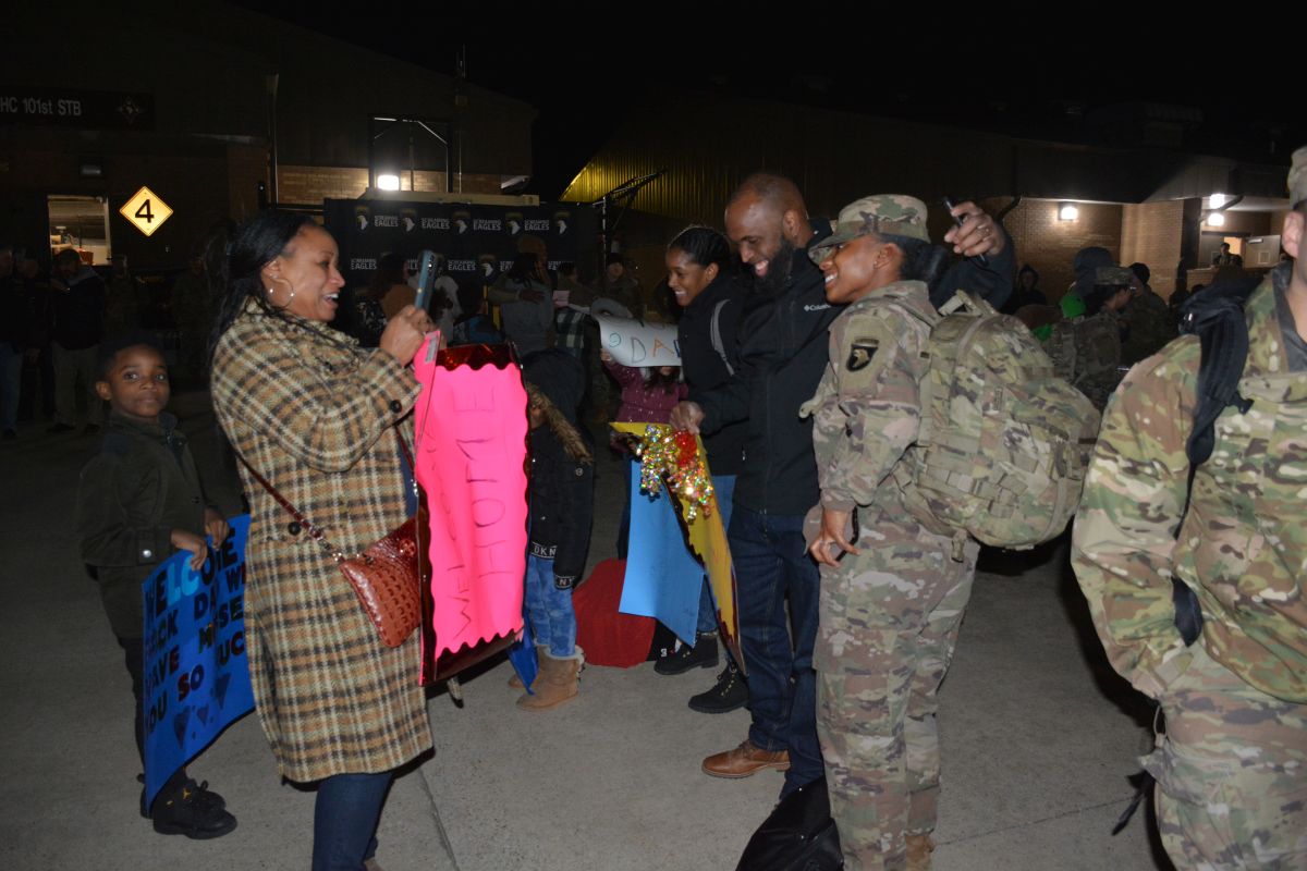 The soldiers with the 101st Sustainment Brigade were returning from a six-month deployment to Europe.