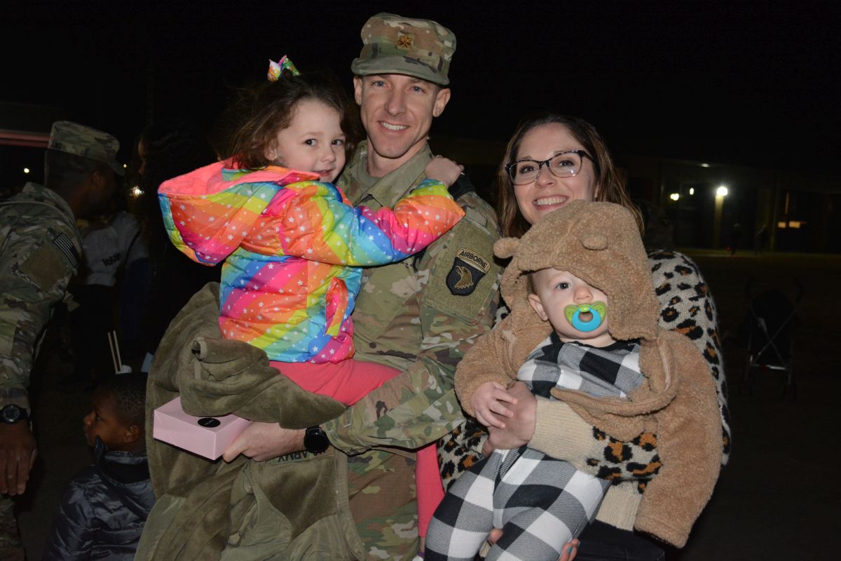 FORT CAMPBELL, KY (CLARKSVILLE NOW) – Fort Campbell welcomed home 135 soldiers with the 101st Sustainment Brigade late Friday night as they returned from a six-month deployment with the U.S. European Command.