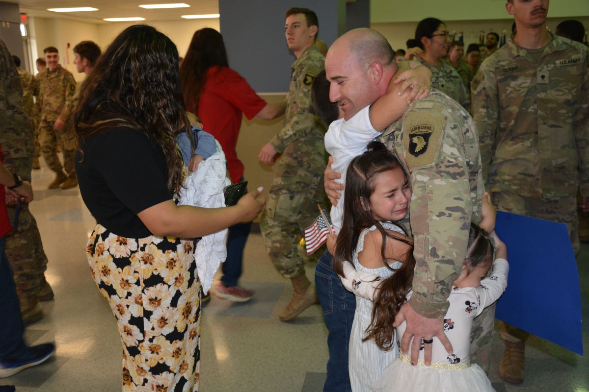 FORT CAMPBELL KY (CLARKSVILLE NOW) – Just over 200 101st Airborne Division (Air Assault) soldiers returned to Fort Campbell on Thursday. They were welcomed with cheers and applause from family and friends after a nine-month deployment supporting the security of U.S. NATO allies and partners in Europe.