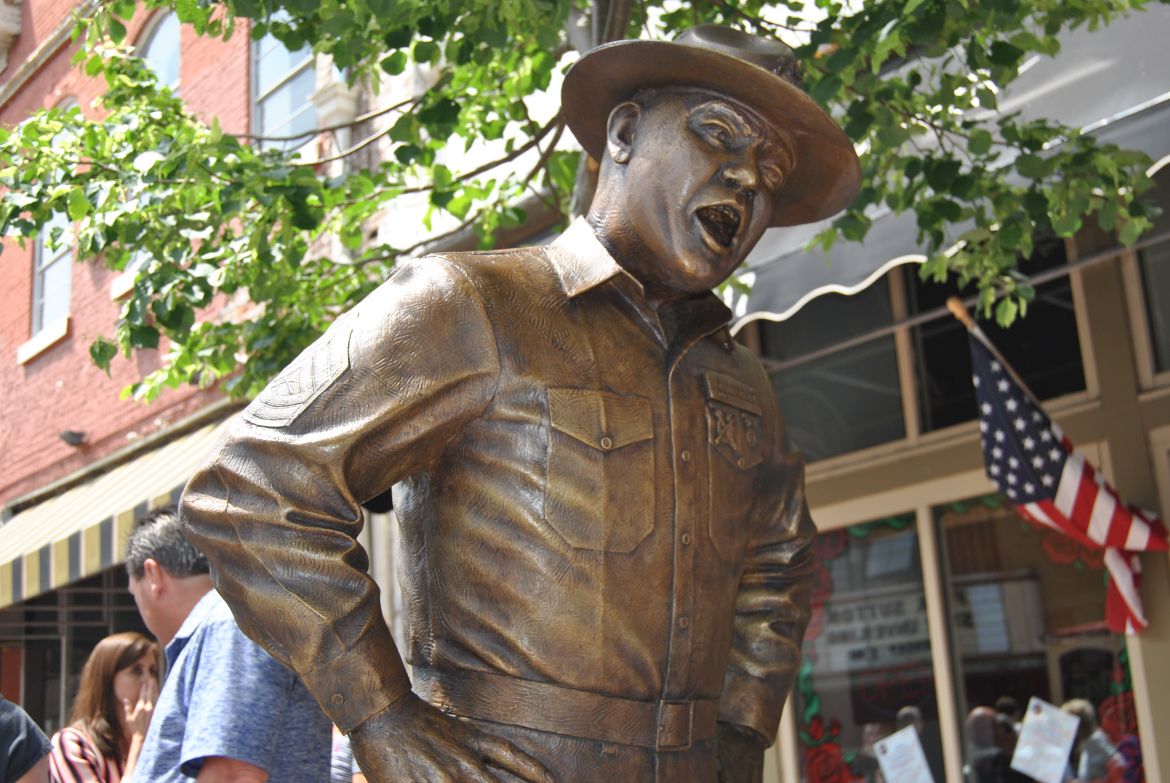 CLARKSVILLE, Tenn. – (CLARKSVILLENOW) A statue of actor Frank “Sgt. Carter” Sutton, who was born and raised in Clarksville, was dedicated Wednesday on Franklin Street in Downtown Clarksville.