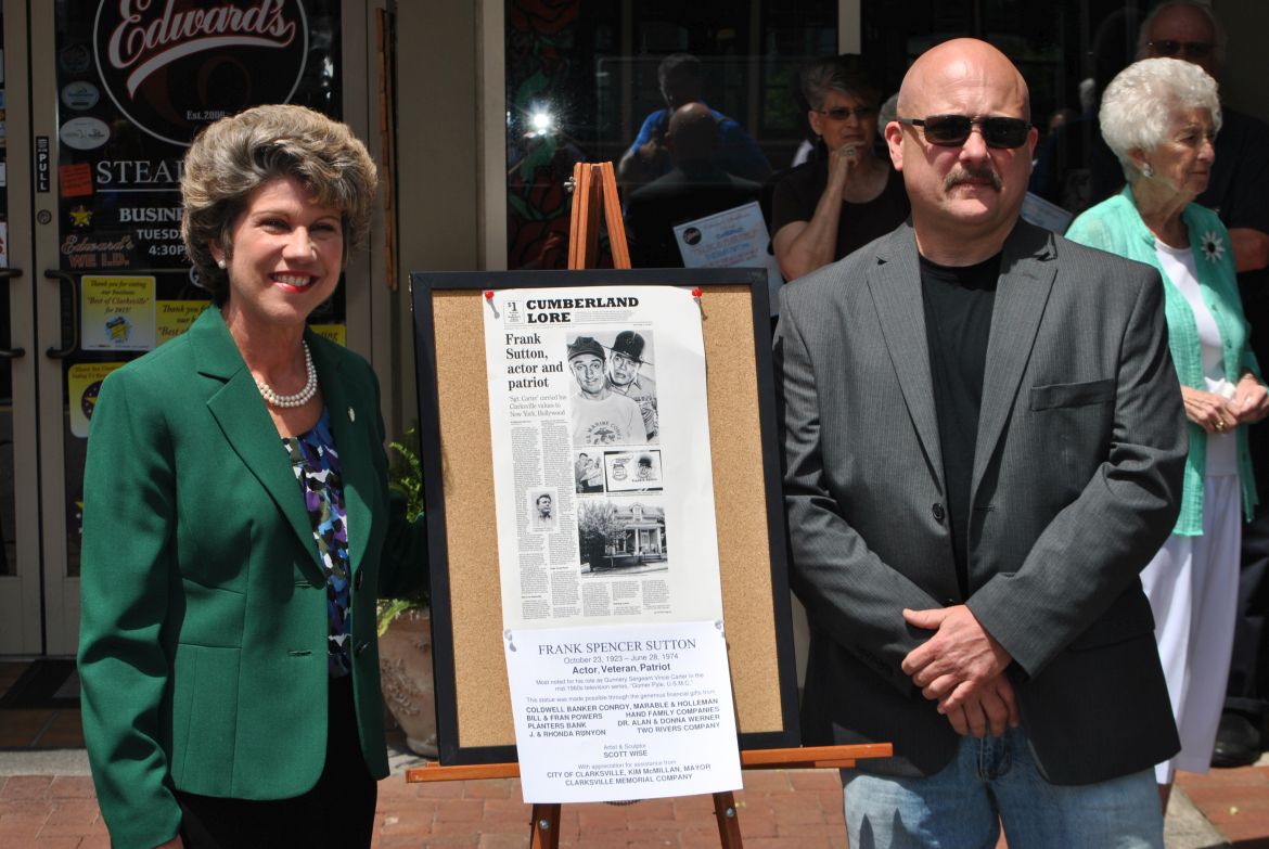 Mayor McMillan, suffering from a bad case of laryngitis, said through a spokesman: “This is a great day for Clarksville, especially downtown. I thank Mark and the committee for their accomplishment. Frank Sutton remains a ‘favorite son’ of our community and this is a fitting tribute to him. He gave distinguished service to our country, and by all accounts, he was always fond of Clarksville, and remained true to his relatives and roots here.”
