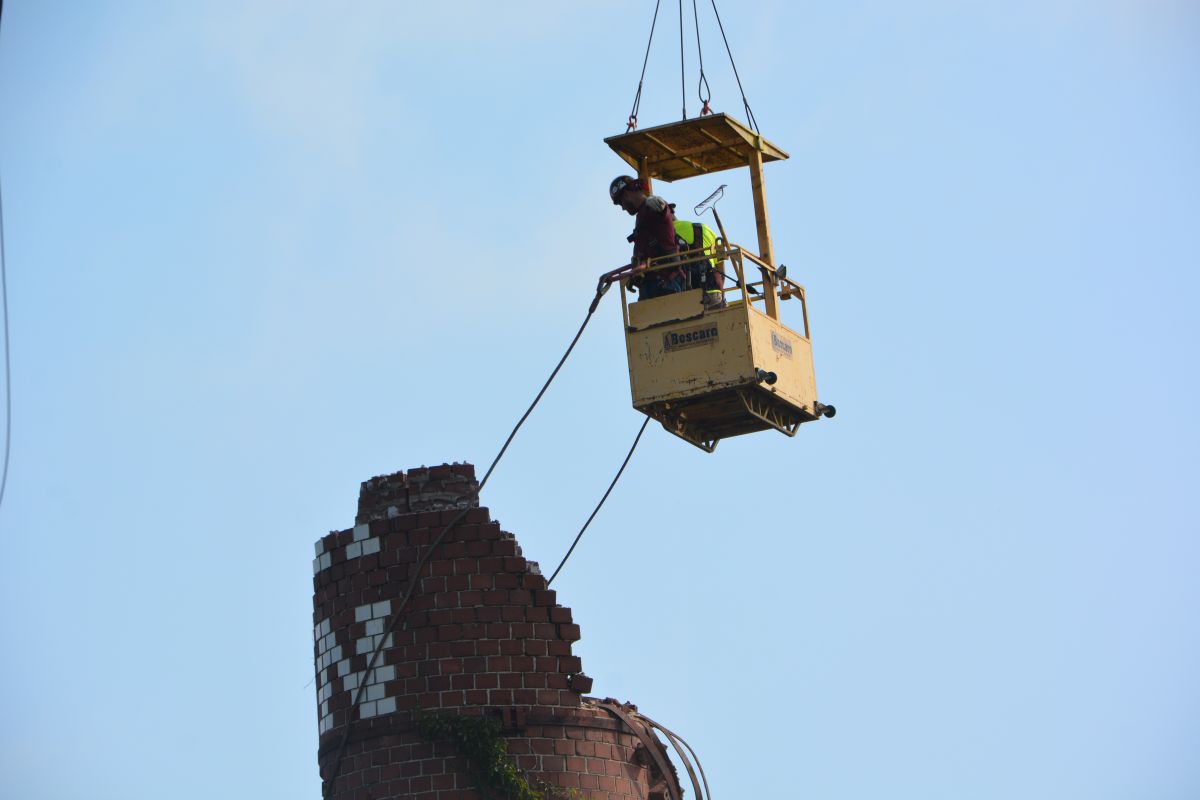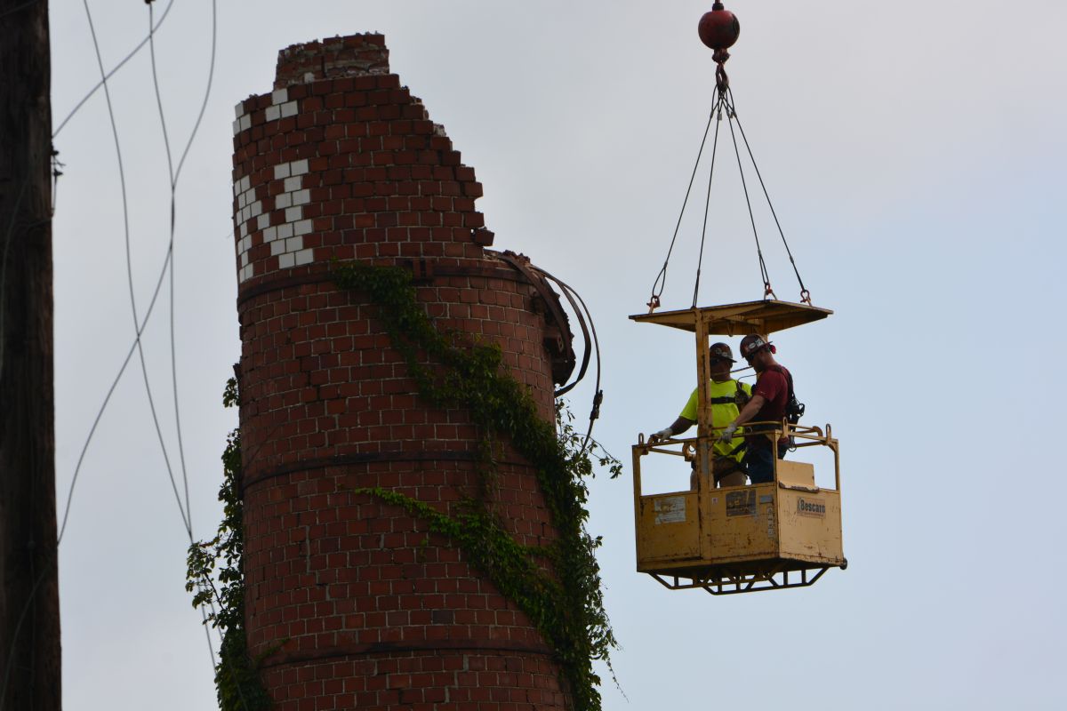 The site is being demolished to make way for future development. There had been discussion of leaving the brick smokestack in place, but it was too dangerous to keep or to restore, city officials have said.