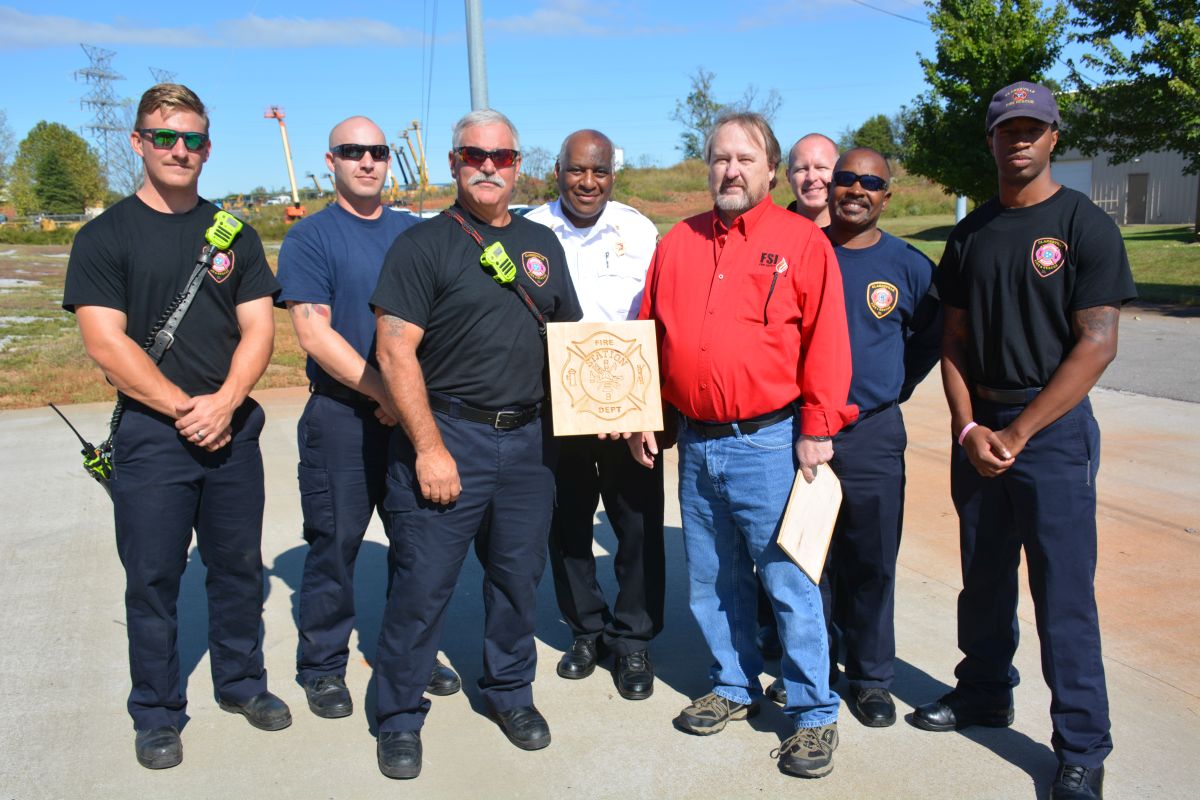 A number of Firefighters with Clarksville Fire Rescue were on hand for the ribbon cutting, and FSI presented a group of Station 9 Firefighters with a specially made wooden plaque for their service to the community.