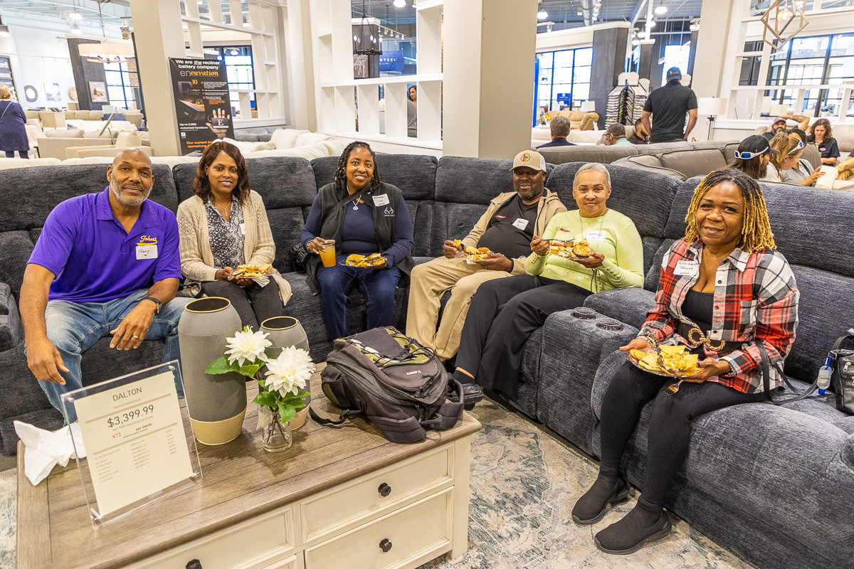 Gary, Alela, Tamuriele, Adam, Edith, and Diane at the Clarksville Chamber of Commerce Business After Hours at Furniture Connection on October 17, 2024. (Wesley Irvin)
