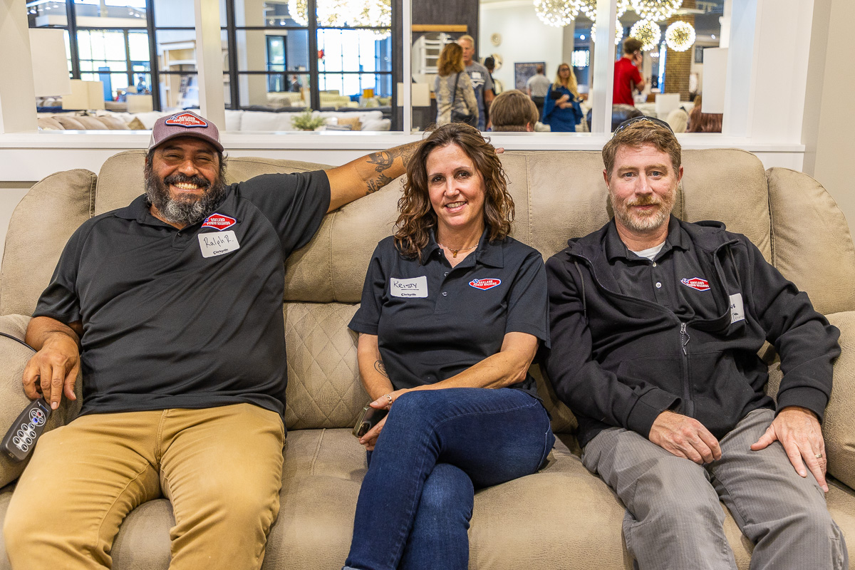 Ralph, Kristy, and Dave at the Clarksville Chamber of Commerce Business After Hours at Furniture Connection on October 17, 2024. (Wesley Irvin)