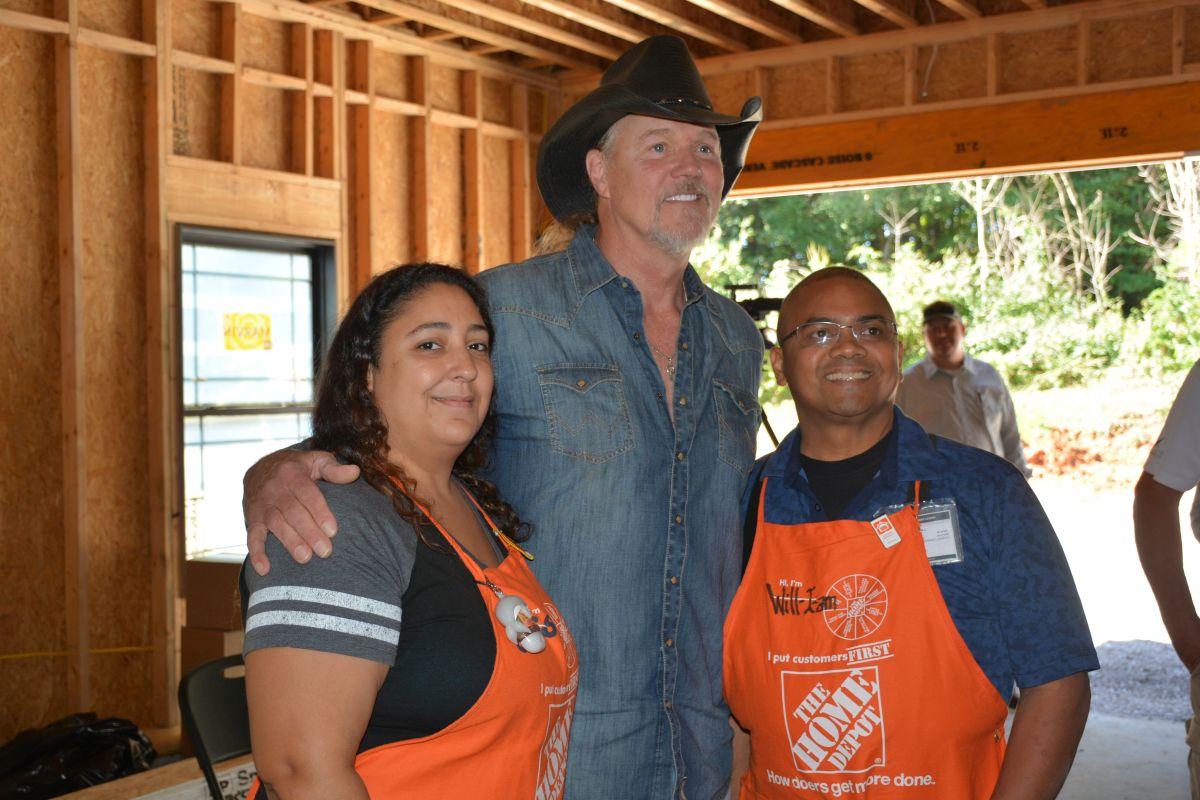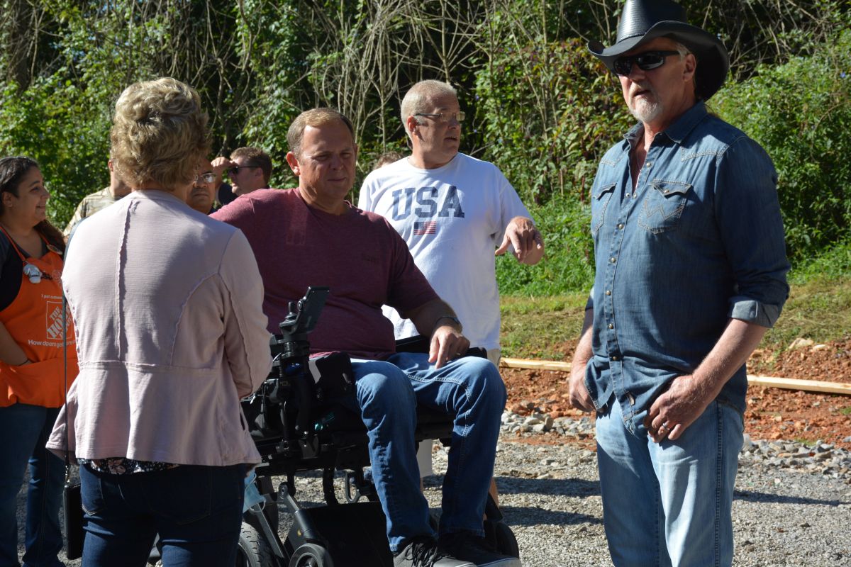 Singer Trace Adkins speaks with with supporters of Christopher Kurtz outside the specially adapted smart home being built for the wounded Army veteran on Thur September 9 2021 (Lee Erwin).