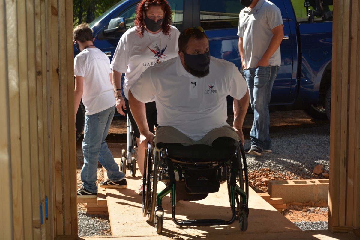 Christopher Kurtz, enters his specially adapted home being built for the wounded veteran on Thur, September 9 2021 (Lee Erwin).