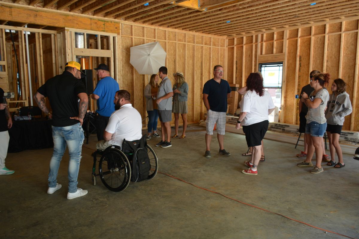 Friends, family, and supporters gather Inside the specially adapted smart home being built for wounded Army veteran Christopher Kurtz on Thur September 9 2021 (Lee Erwin).
