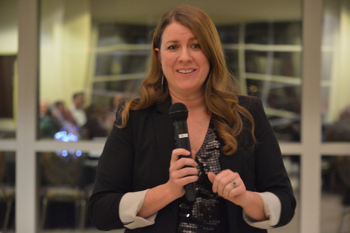 Summer Fuchs speaking at Maestros Magical Moonlight for the Gateway Chamber Orchestra on Jan. 20, 2023. (Lee Erwin)