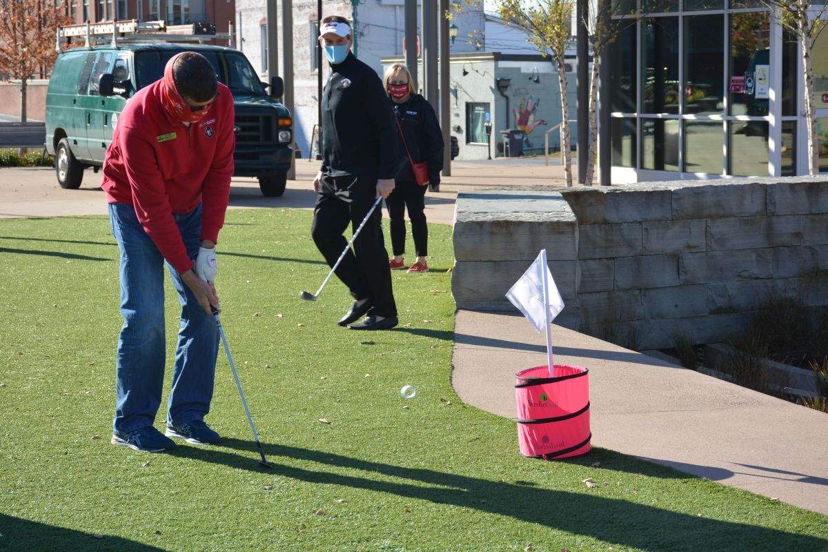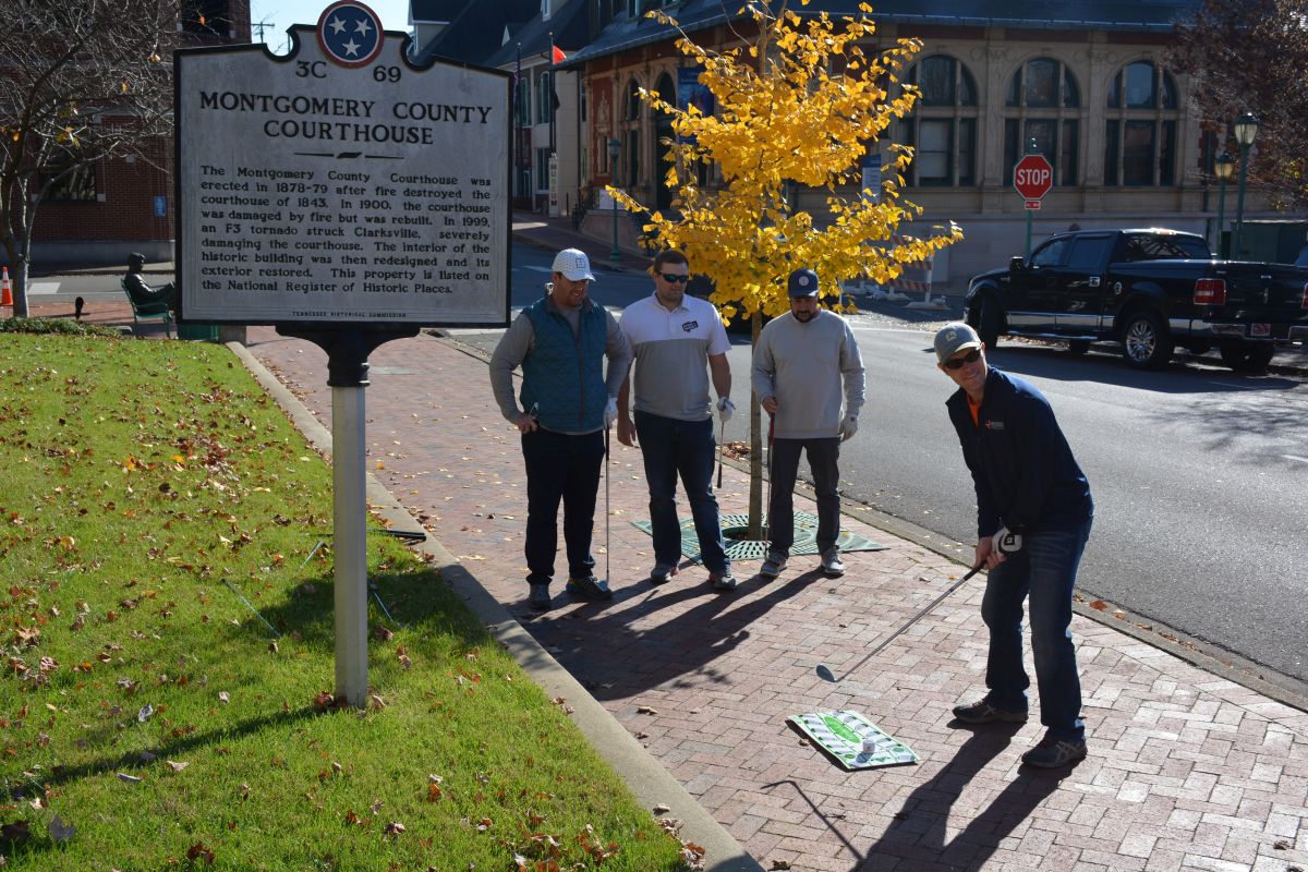 CLARKSVILLE, Tenn. (CLARKSVILLENOW) – If you noticed a lot of people walking around downtown Clarksville Friday carrying golf clubs, they were not lost, they were playing in the third annual Big Brothers Big Sisters (BBBS) Big Birdie Ball Golf Tournament.