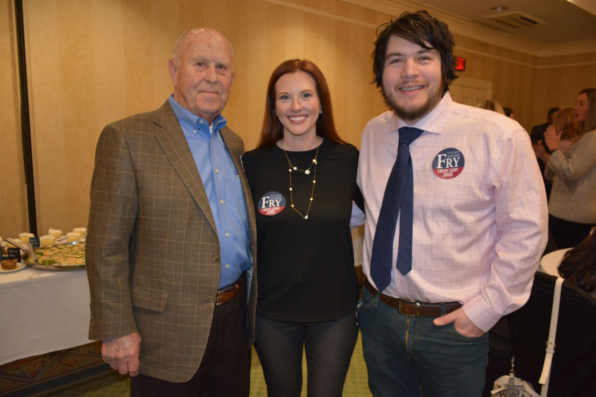 Jeff Burkhart and Cindy Greene with Circuit Court Judge Adrienne Fry (center), at a campaign event for Fry at the Clarksville Country Club, on Mar. 25, 2022. (Lee Erwin).