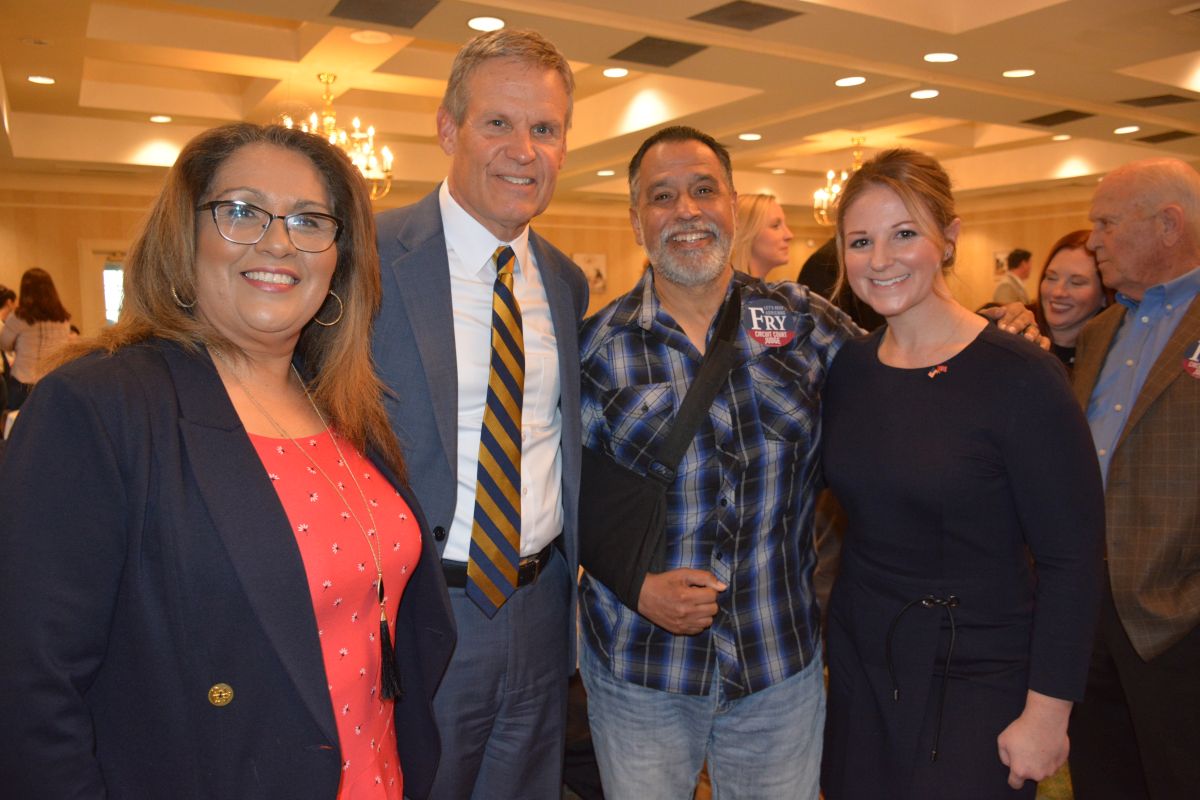 Caroline Vallejos, Governor Bill Lee, Tommy Vallejos and Judge Adrienne Fry, at a campaign event for Circuit Court Judge Fry at the Clarksville Country Club, on Mar. 25, 2022. (Lee Erwin).