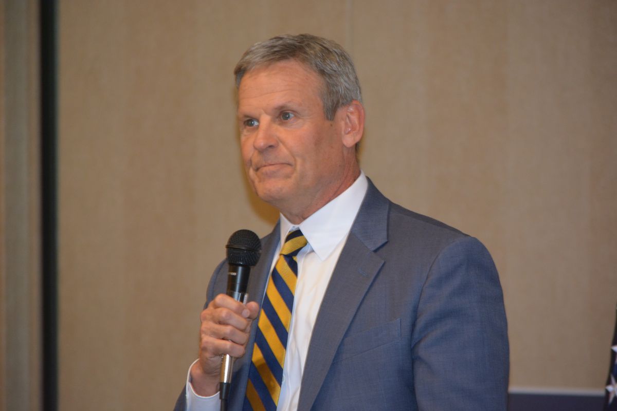 Governor Bill Lee speaks at a campaign event for Circuit Court Judge Adrienne Fry at the Clarksville Country Club, on Mar. 25, 2022. (Lee Erwin).