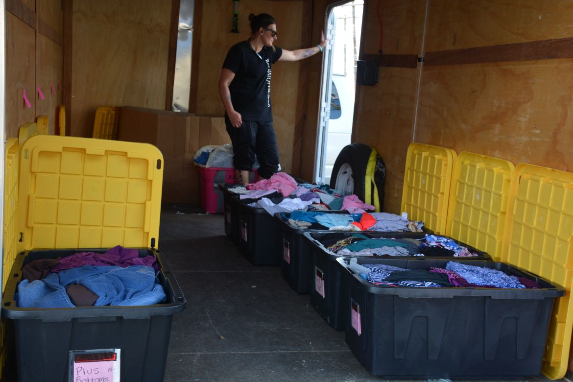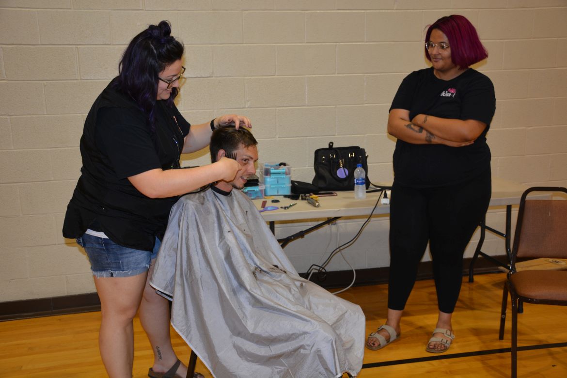 Along with Loaves & Fishes, YAIPaks was on hand offering free clothing. There were also teen volunteers from Clarksville High School, volunteer hair stylists, and a member of Friends of Aunt Flo provided hygiene products.