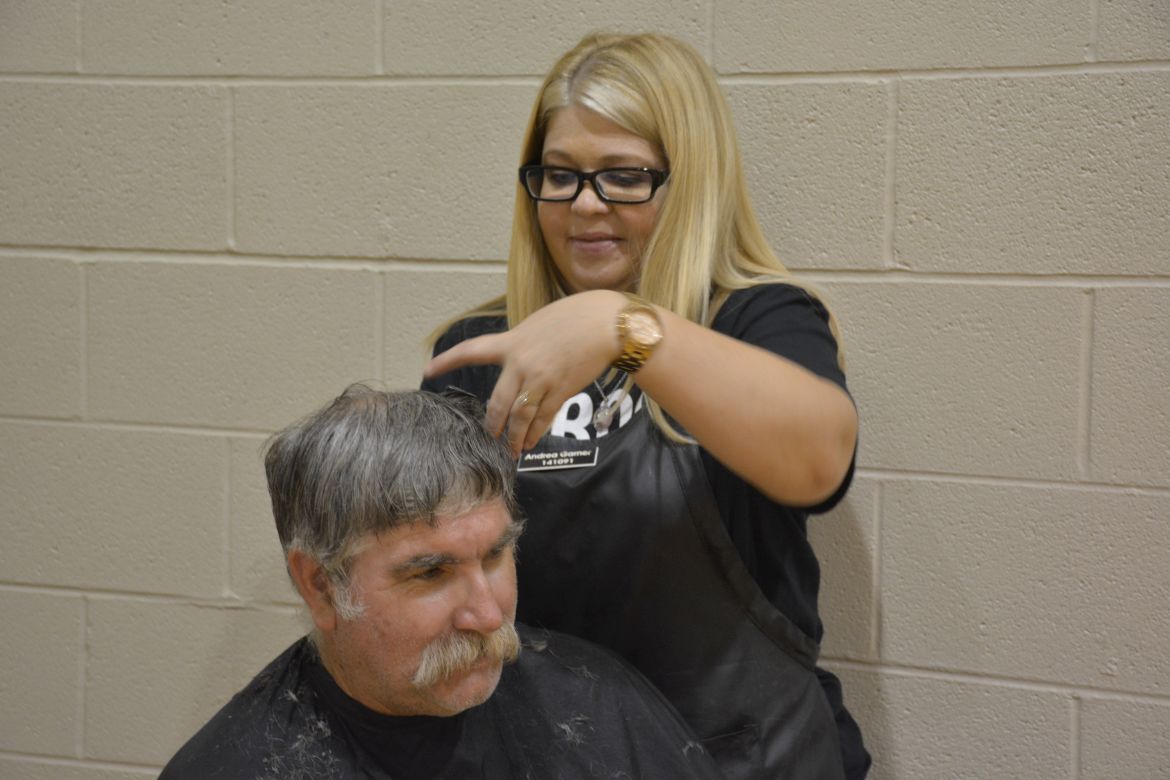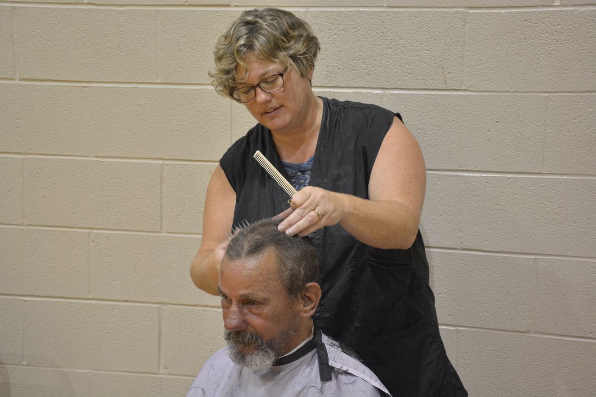 During the afternoon volunteers were busy as over 60 people in need stopped by with close to 100 bagged lunches. Many people received haircuts and some of the homeless also took advantage of showers.